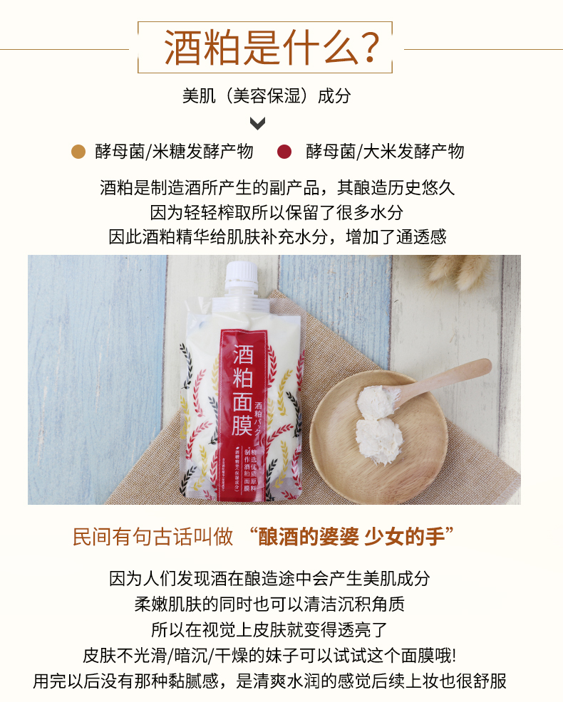 [3袋]酒泊酒糟面膜正品酒粕涂抹酿酒范日本酒粨酒槽补水红腰子muf