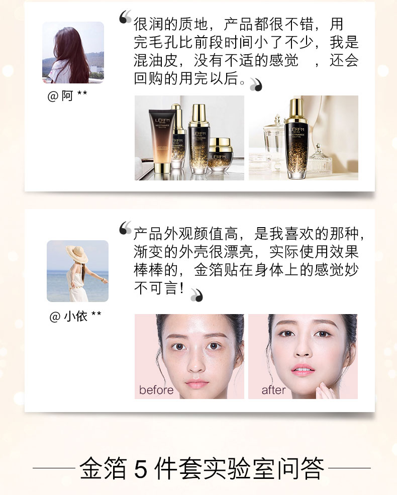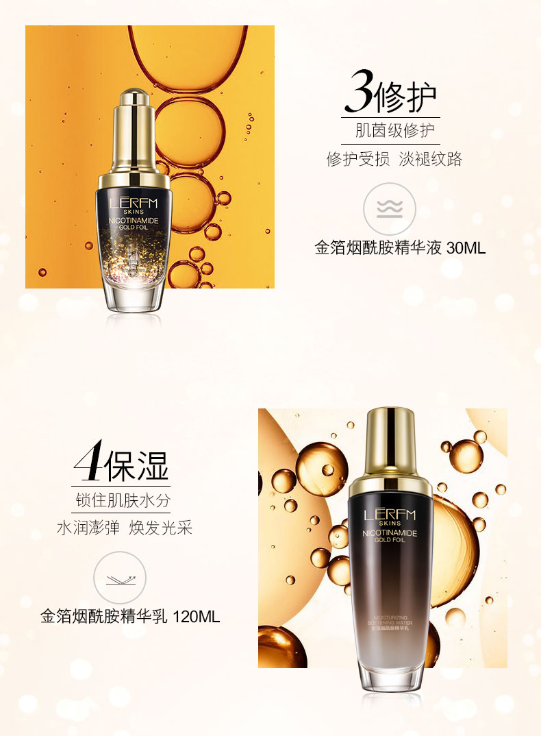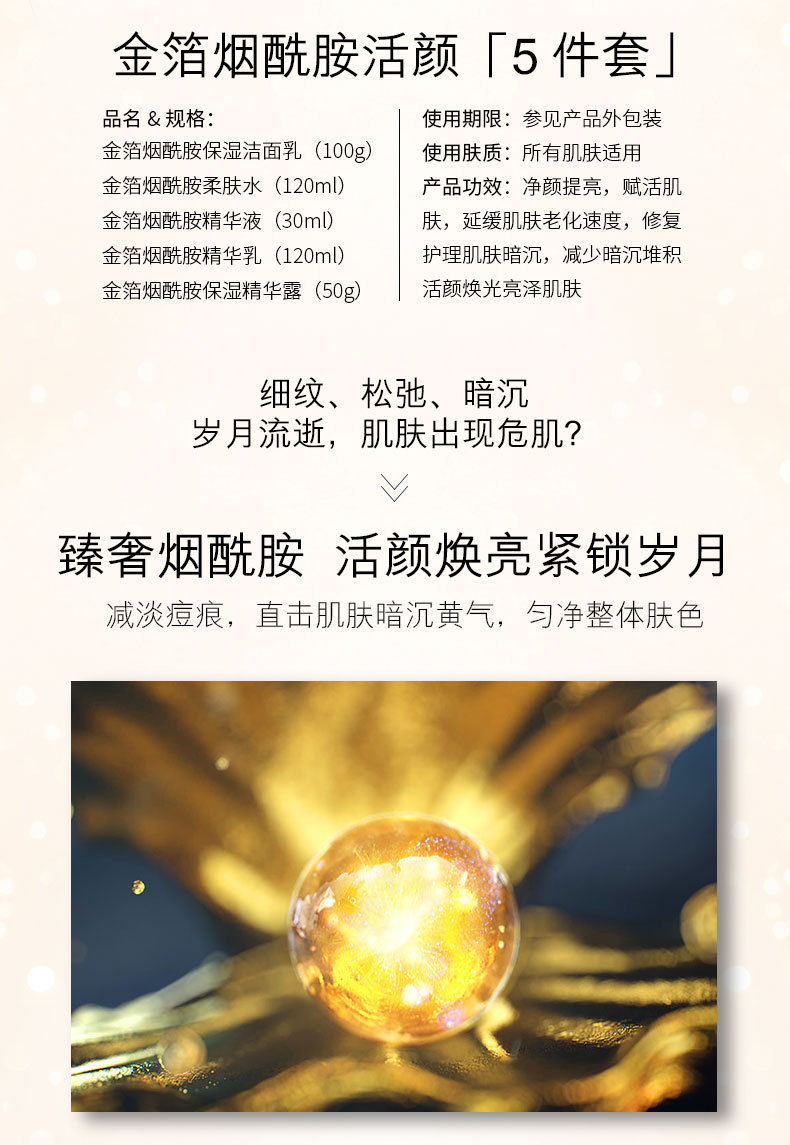 【金箔烟酰胺5件套】璀璨黄金,深度滋养,嫩肤亮颜,一套搞定,全套深补水,涂在脸上,像给肌肤喝过水一样,让你重返18岁。【过敏包退】