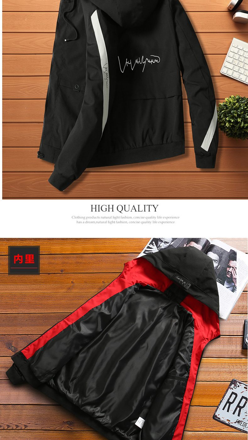 玖捌地带2019秋季韩版男士休闲薄款开衫连帽服青年夹克衫外套男服