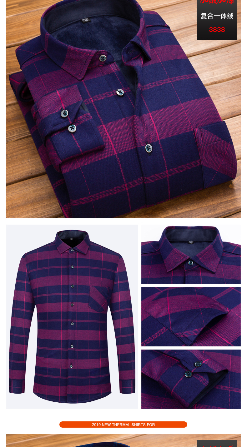 玖捌地带2019秋冬韩版男士休闲加绒加厚立领衬衫外套青年百搭衬衣