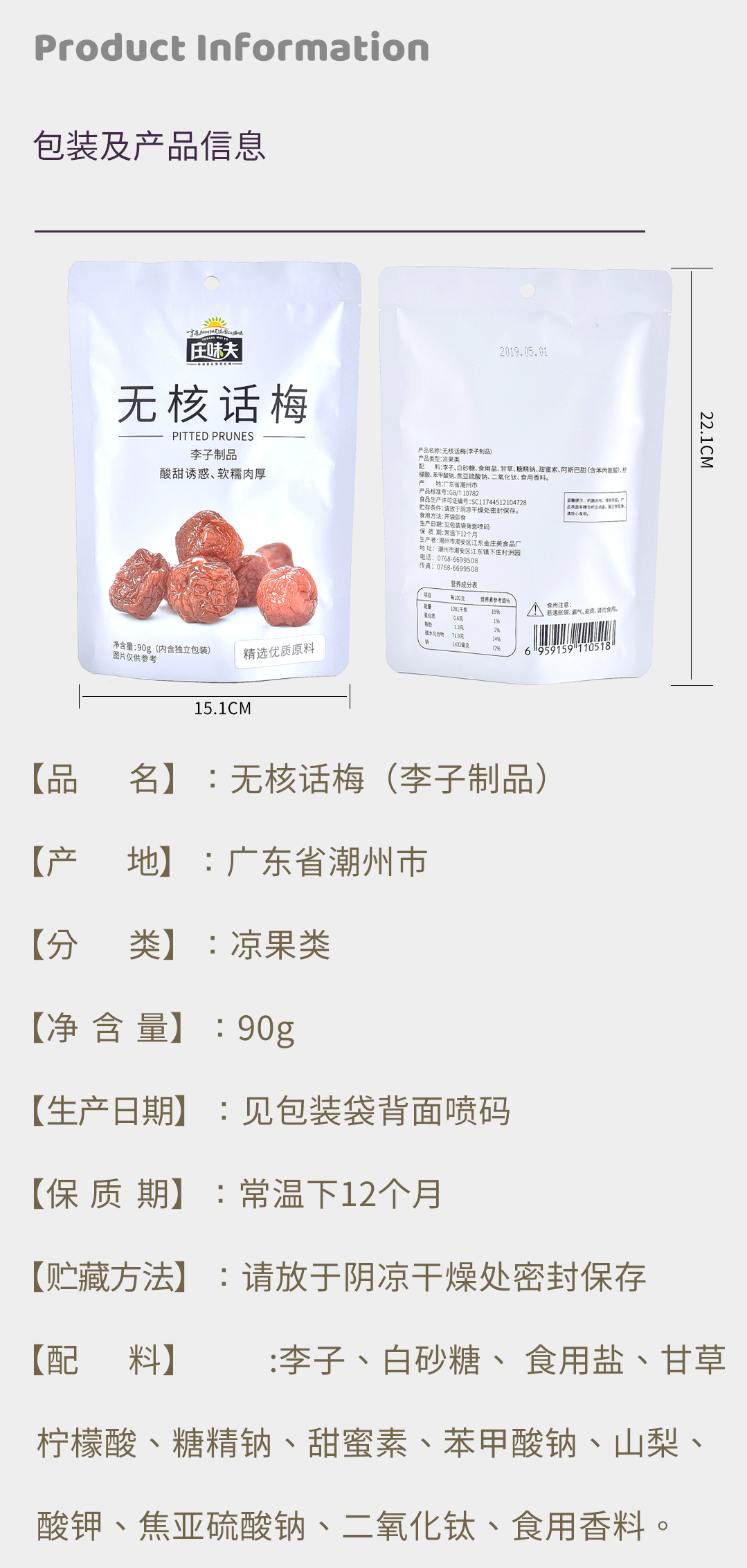 【庄味夫】无核话梅90g*1袋 话梅干办公室休闲零食蜜饯果脯