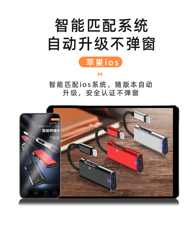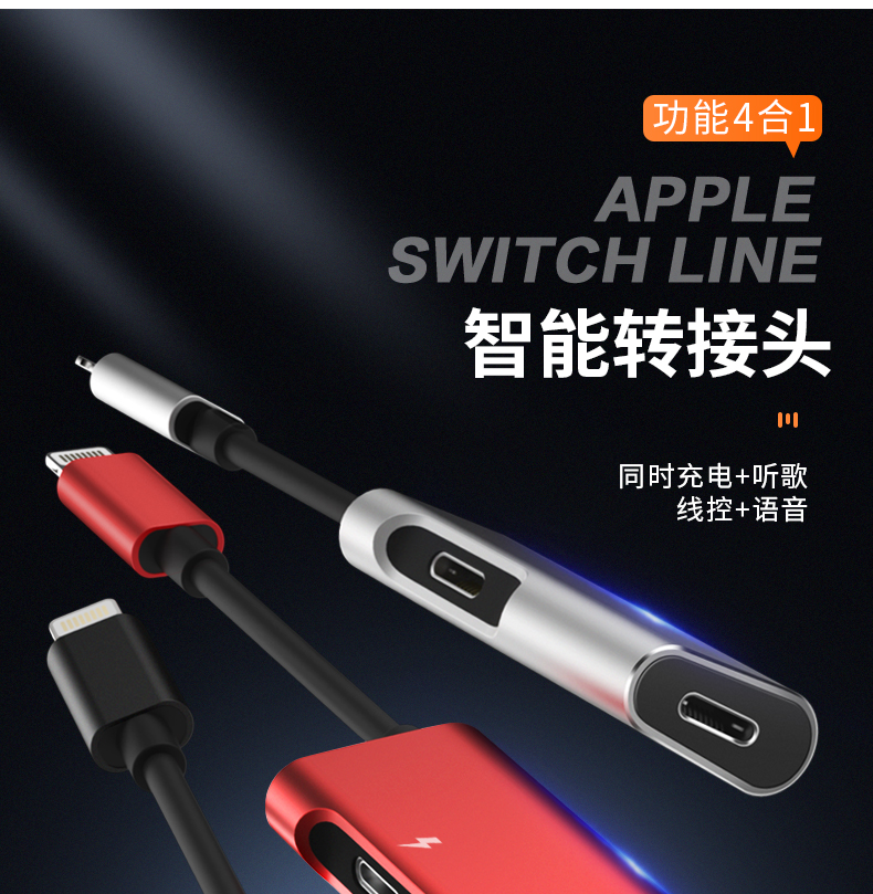 有苹果的宝宝看过来,让你充电听歌两不误的四合一转接头!微磨砂金属材质,智能芯片,高保真无损音质,通话听歌音质清晰不卡,专为听歌/游戏而生~