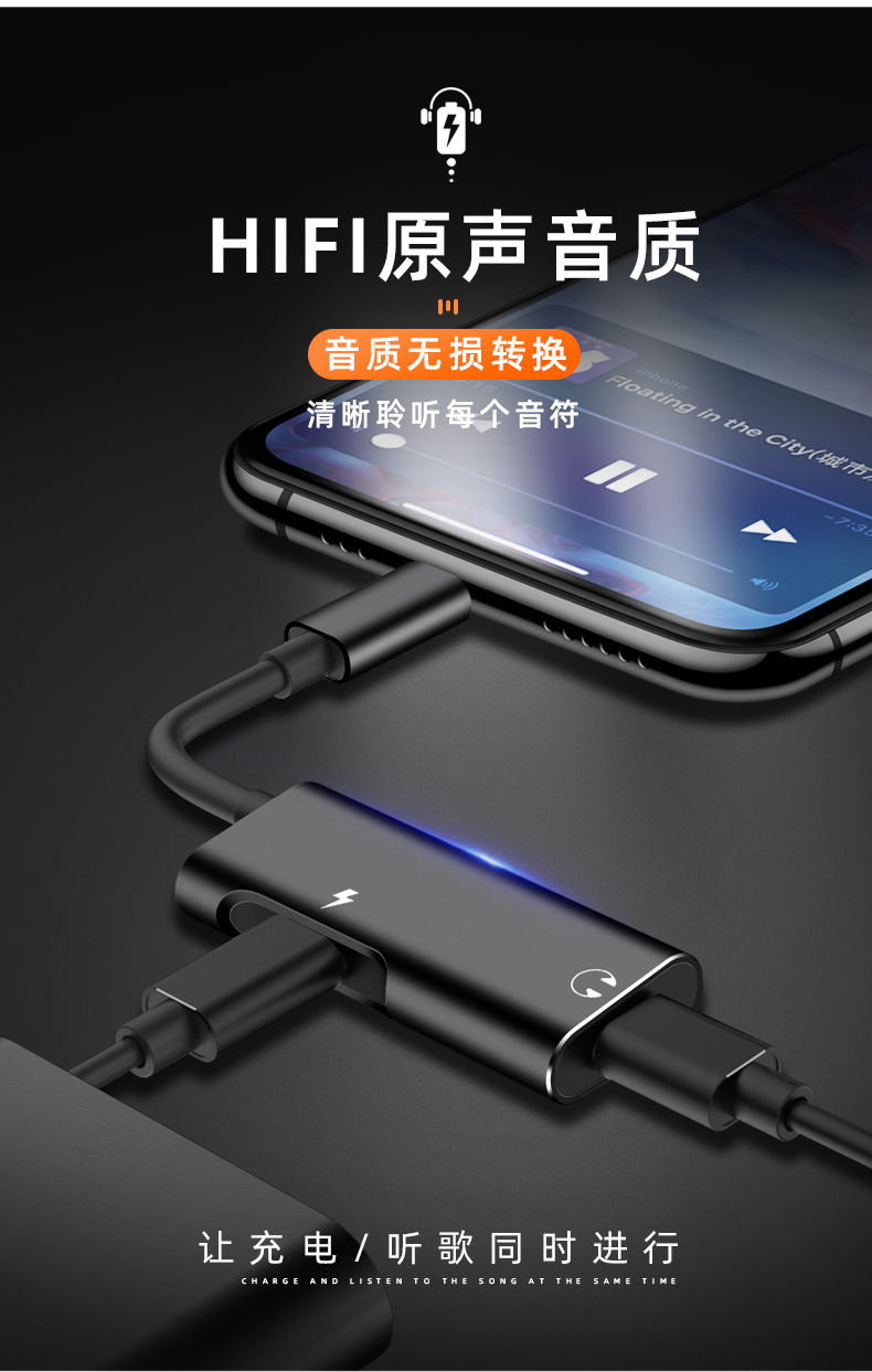 苹果7耳机转接头iPhone8转换器二合一xsmax手机充电听歌转换头i7数据线x/xr/8P/plus分线器充电线