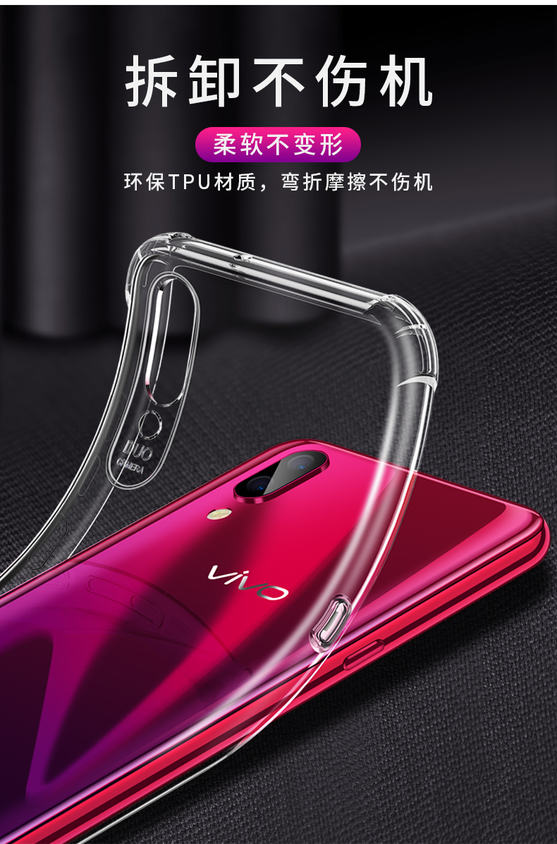 vivo x21手机壳x23幻彩版x27新款Pro透明S1硅胶iQoo全包边x20plus防摔X9/X9s前后指纹x20超薄男女软外壳潮