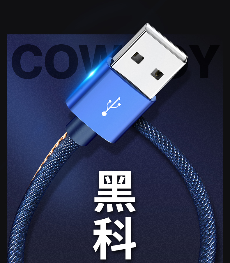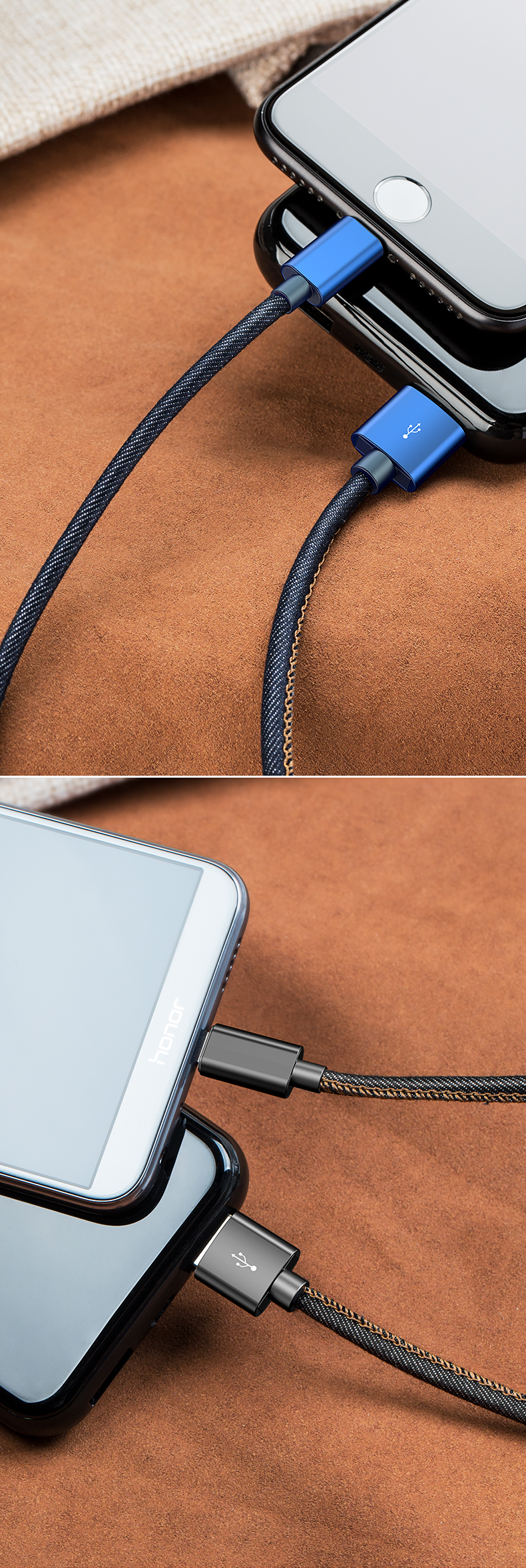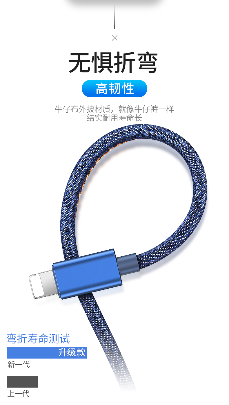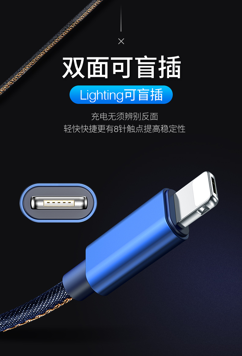 黑科技又来了!你用过一头两用的数据线么?牛仔布料,结实强韧,苹果安卓一个头就搞定!出门再也不用带两根线了