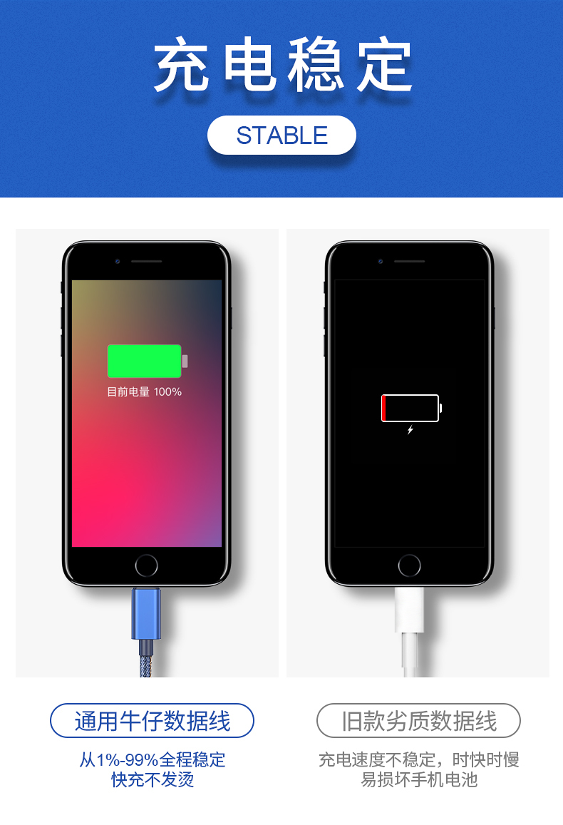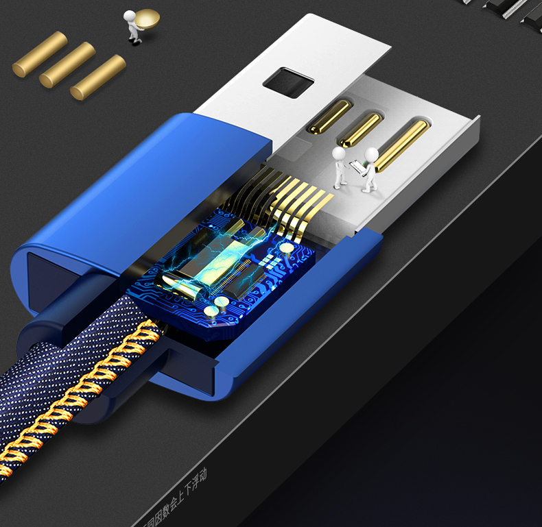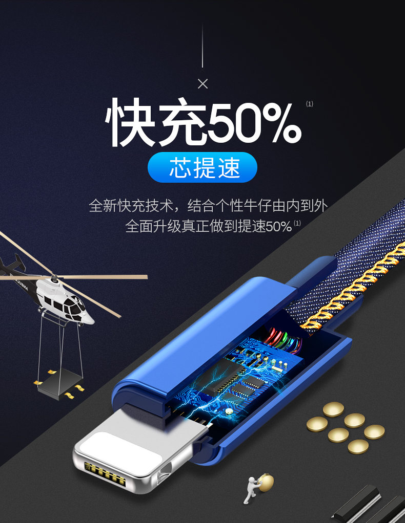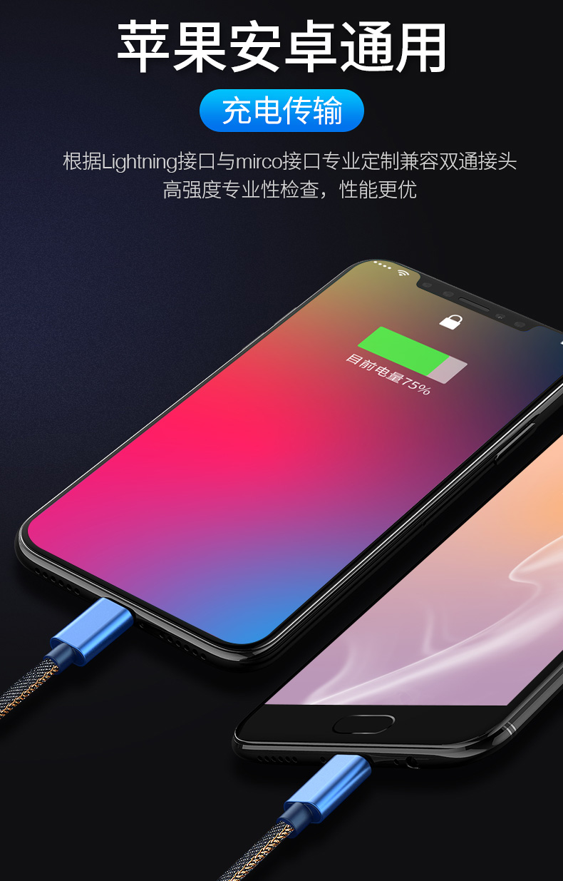 黑科技又来了!你用过一头两用的数据线么?牛仔布料,结实强韧,苹果安卓一个头就搞定!出门再也不用带两根线了