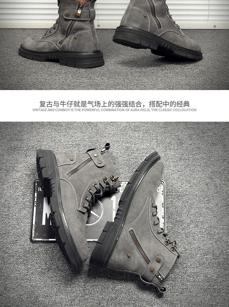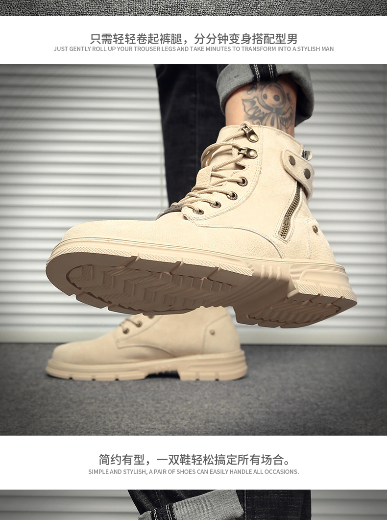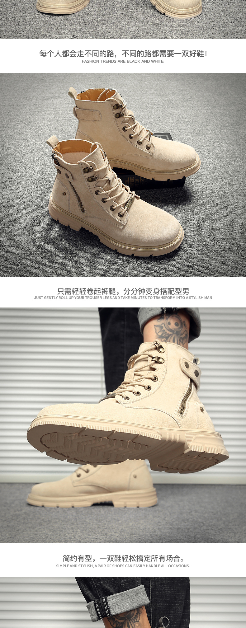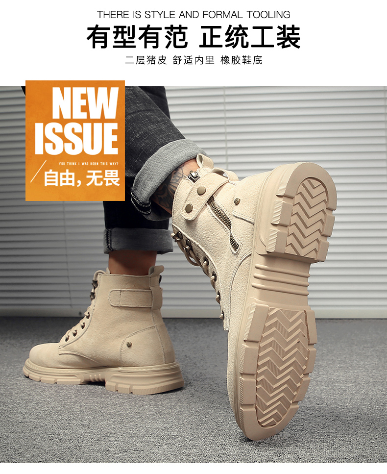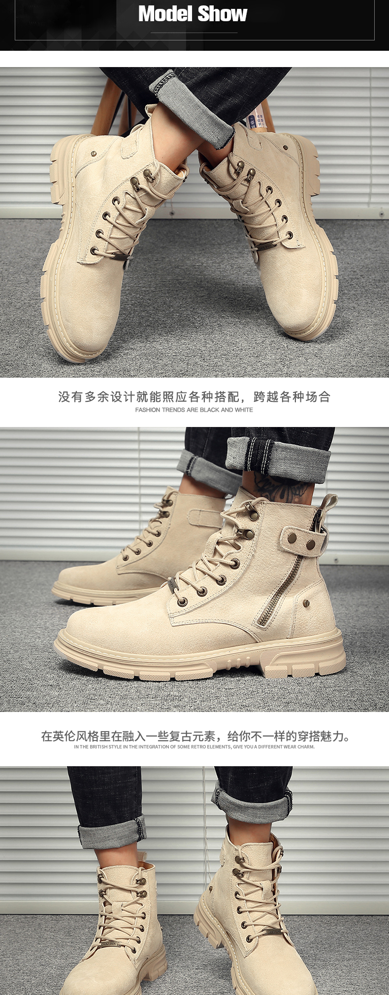 2019秋季新款马丁靴男高帮鞋冬季加绒百搭男士男靴子中帮工装军靴