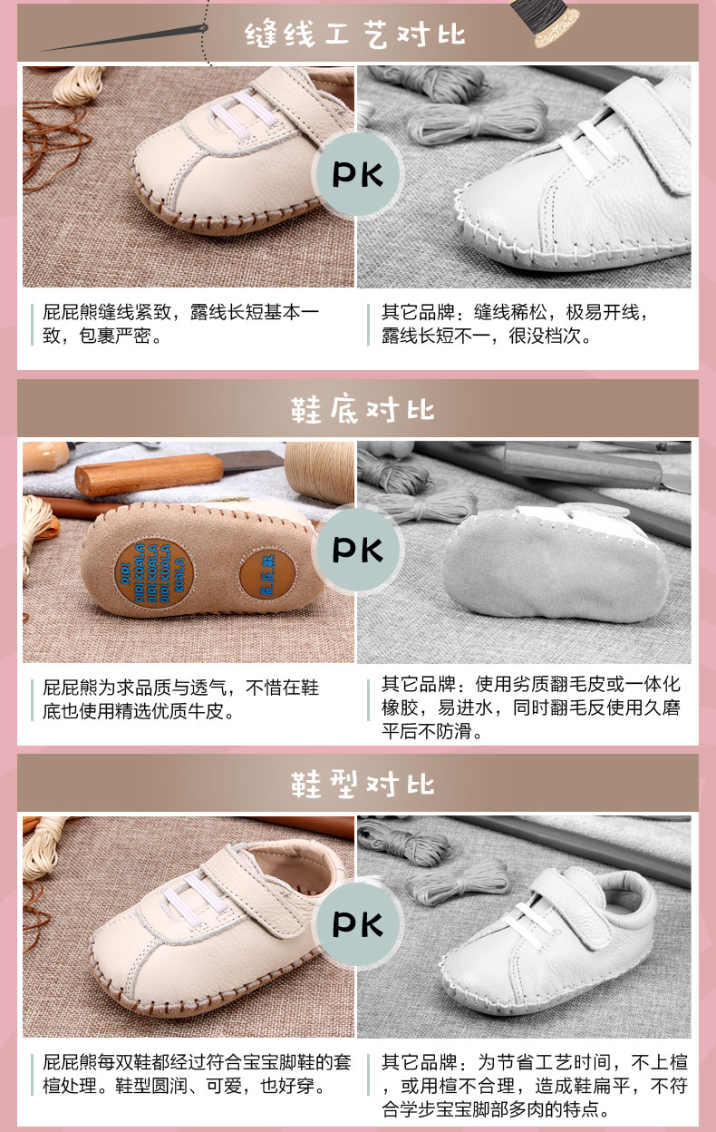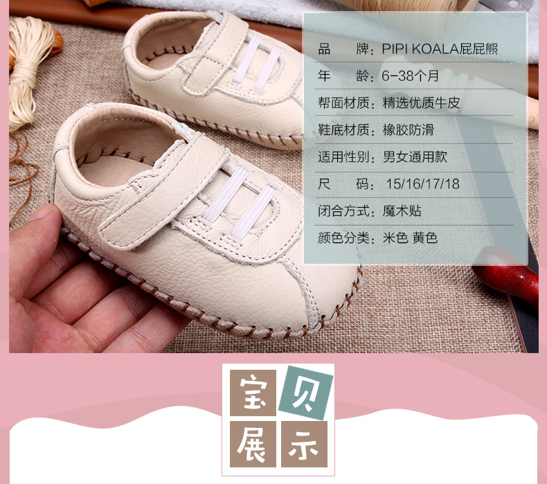 【屁屁熊】婴儿春季学步鞋,穿着舒适,牛皮透气,柔软防滑不怕摔。宝宝春季学步走路之选。【赠运费险】