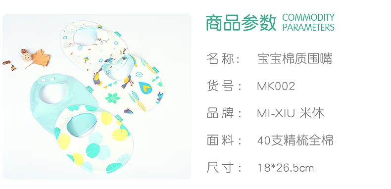 米休婴儿全棉口水巾围嘴胎帽,优选优质棉花,面料舒适透气,面料对皮肤无刺激,吸水利强。