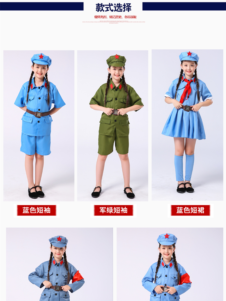 男女7款,1米-1.85米小孩大人的都有!包含衣服、裤子、帽子、腰带、袖章、绑腿、红领巾;景区穿一次照相都要20元!舒适透气,轻薄有型,不起球、不掉色、不缩水、透气舒适!【赠运费险】