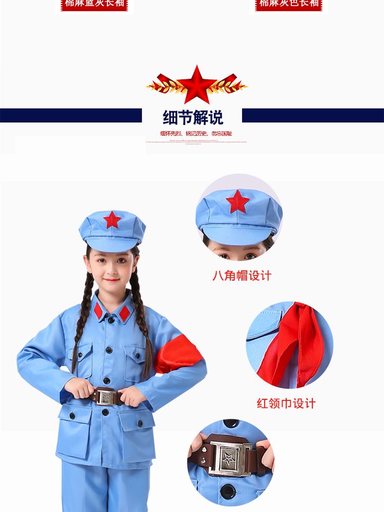 小红军衣服儿童演出服装小八路军红卫兵新四军解放红星闪闪表演服
