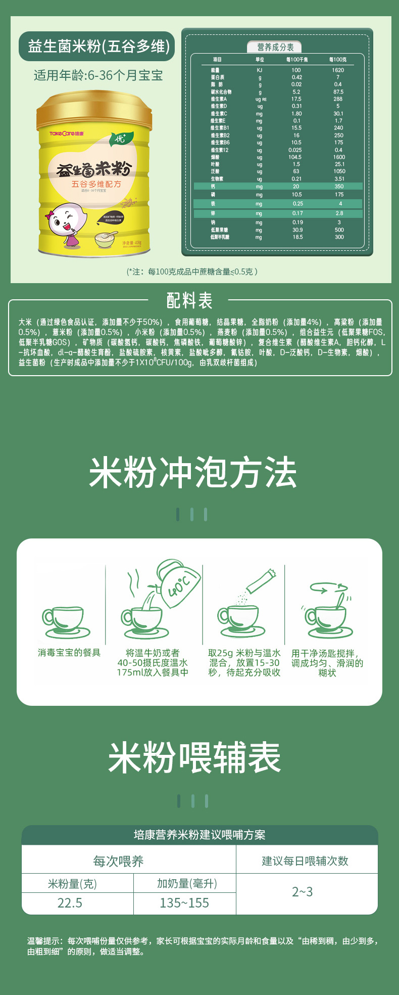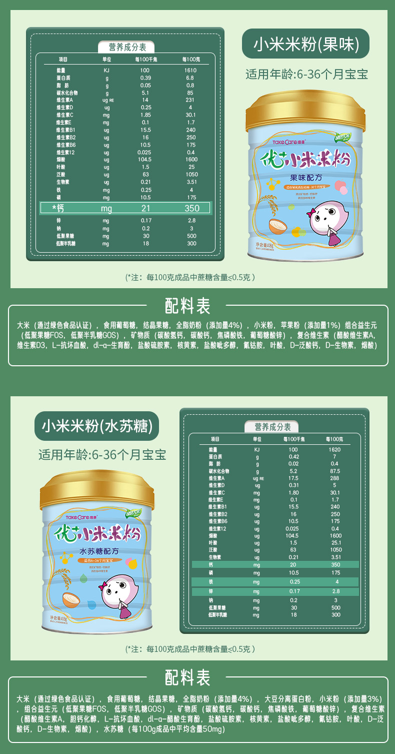 小米粗粮,加奶加钙,非炒制,更易消化。特别添加钙铁锌等营养和益生菌,细心呵护宝宝的肠道和胃,不添加蔗糖,保护乳牙。营养均衡,宝宝更爱吃。【赠运费险】