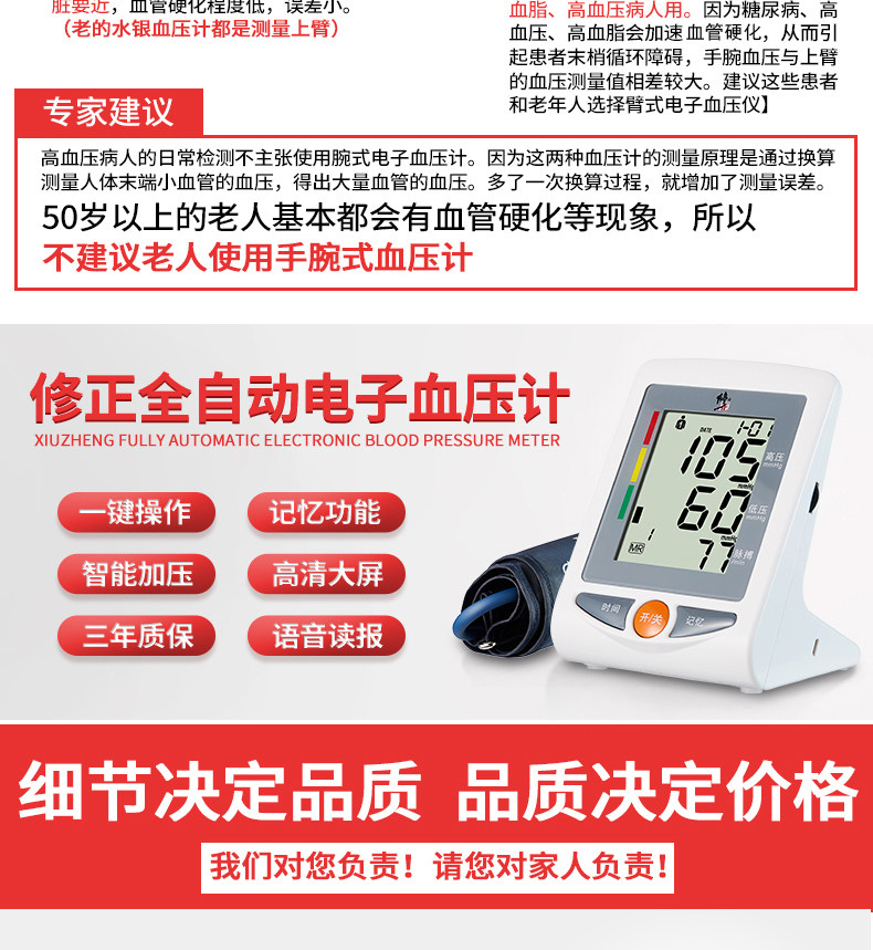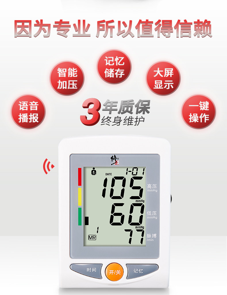 修正电子血压计老人家用上臂式血压仪医用全自动语音高准确测量器