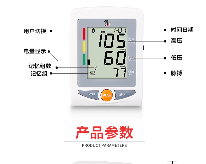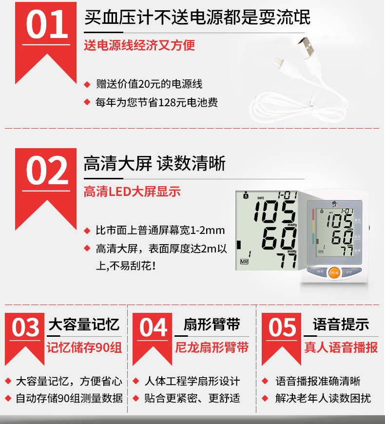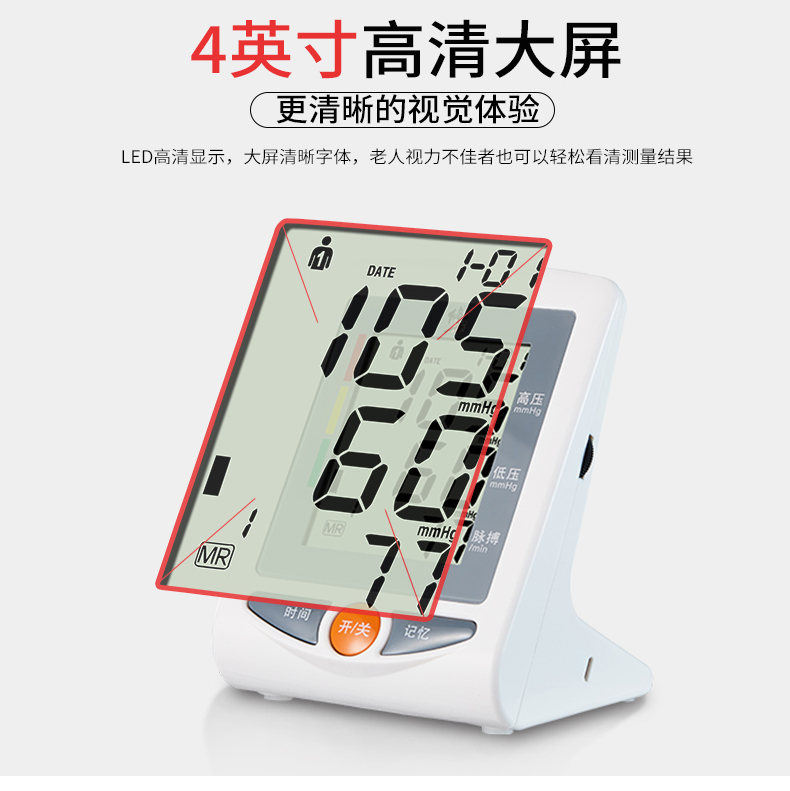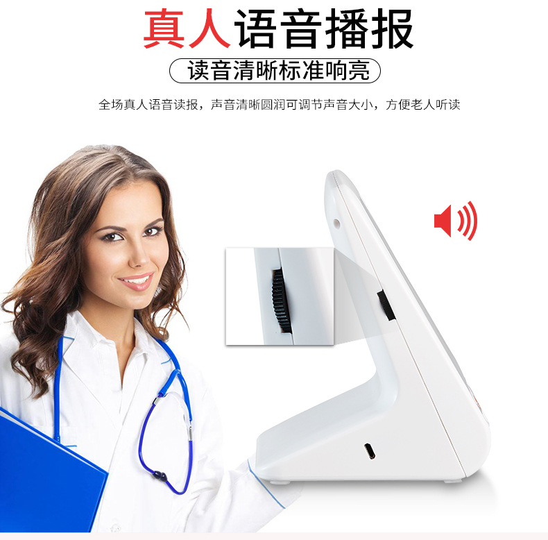 【修正】电子血压计高精准测量仪,真人语音播报,解决老人读数困扰,在家就能轻松测血压,高清LED大屏显示,还送电源线经济又方便!