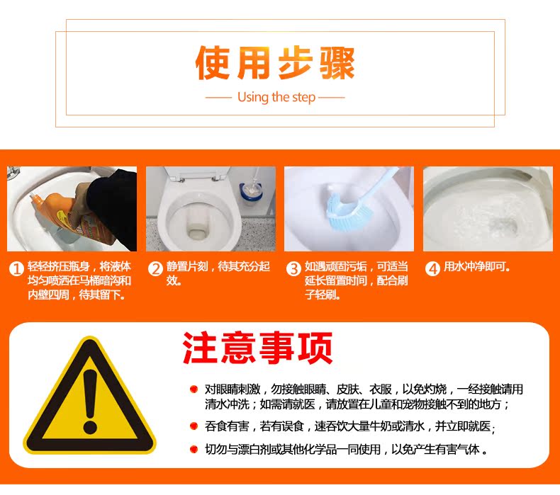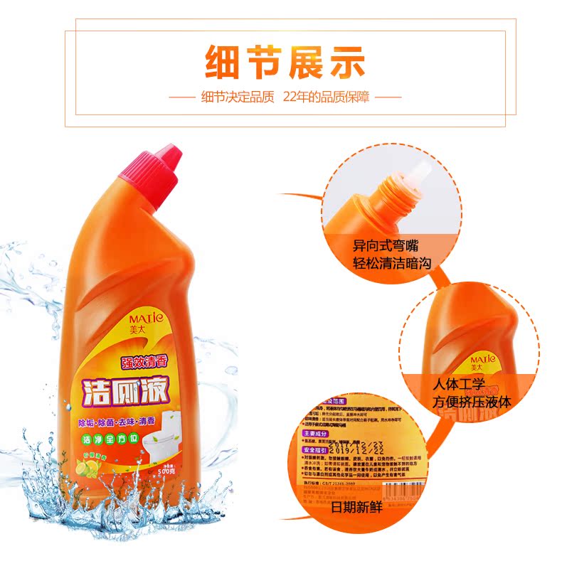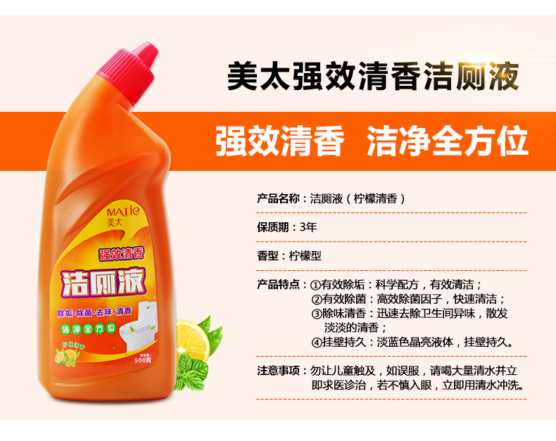 美太洁厕液500ml*3瓶厕所马桶洁厕灵卫生间瓷砖尿垢清洁
