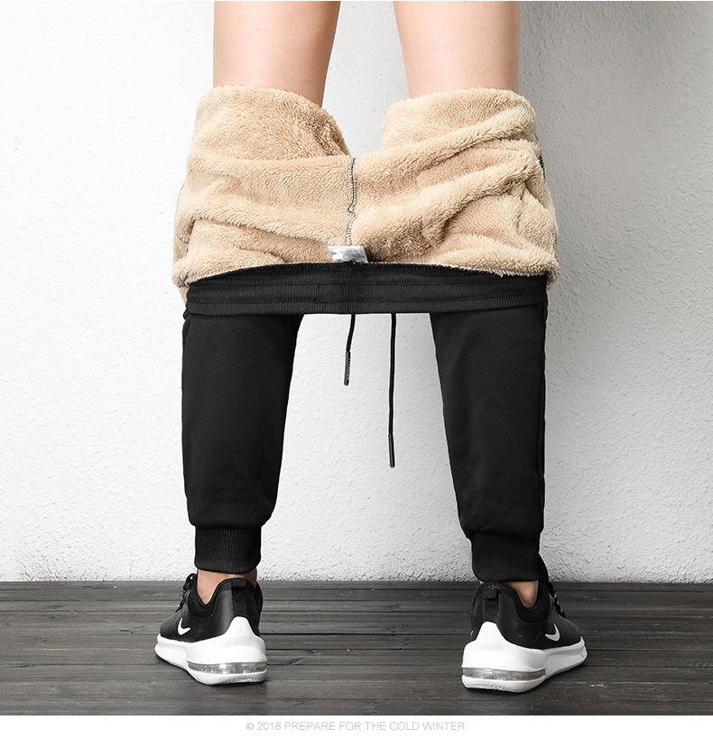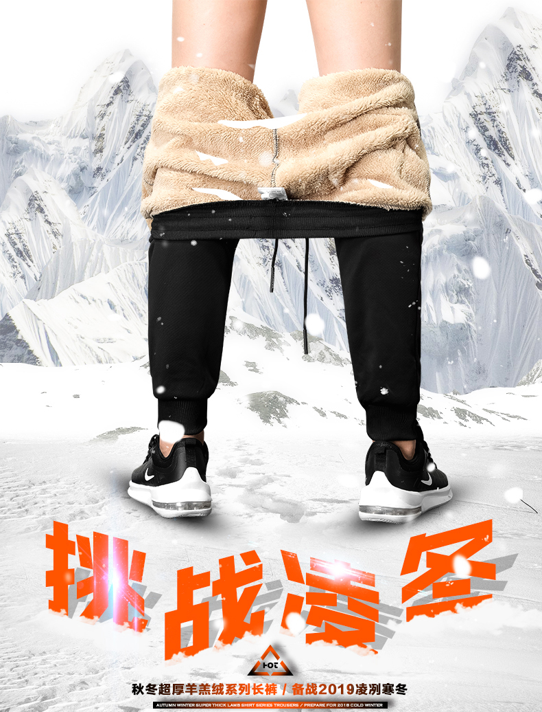 冬季运动裤男加绒加厚羊羔绒裤子保暖卫裤韩版修身男士休闲裤小脚