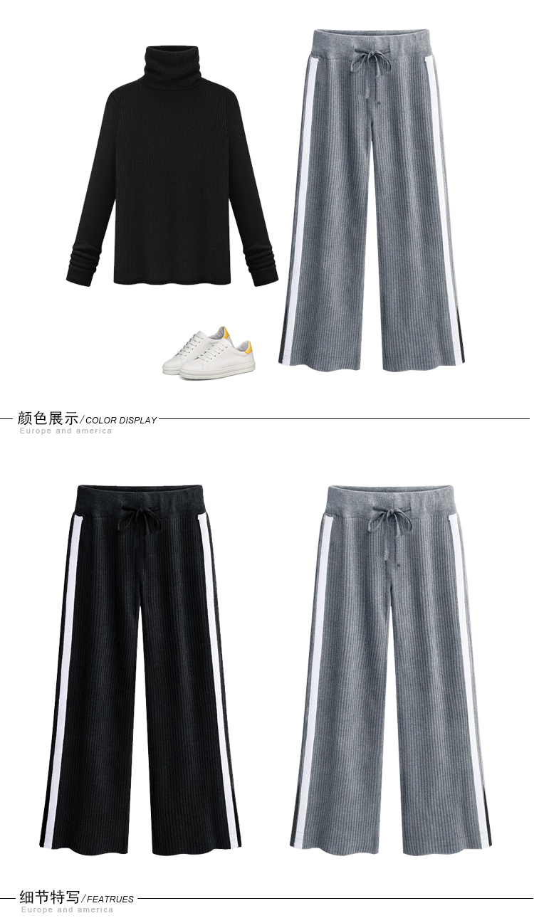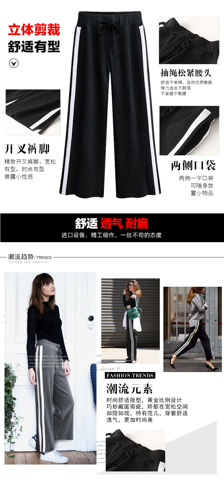 运动阔腿裤女秋装学生韩版宽松高腰开叉休闲裤胖mm大码显瘦垂感裤