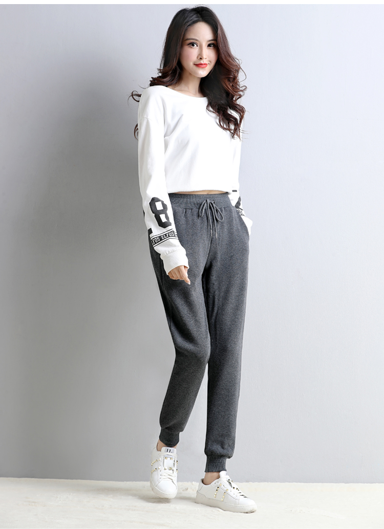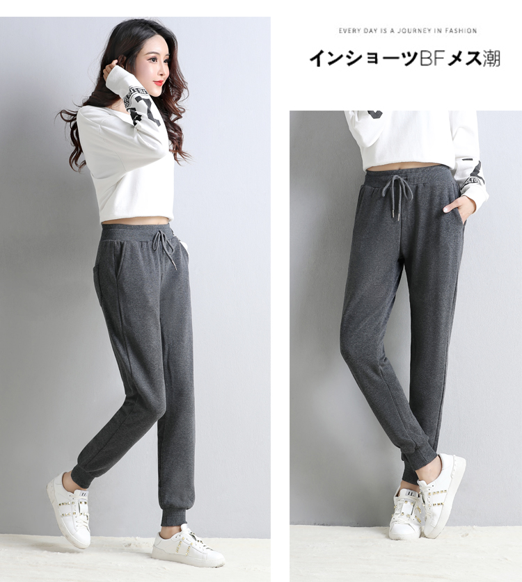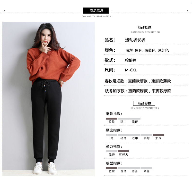 加肥加大码运动裤女春秋宽松薄款束脚卫裤胖mm哈伦裤女休闲萝卜裤