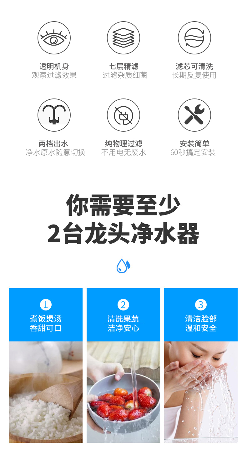 全国联保,滤芯可循环使用,层层细分精滤,除氯除锈,泥沙杂质。滤芯可清洗,即滤即用,安装超简单,几十元就可以用到健康的水源,赶快带回家,让家人都喝上放心水!【赠运费险】