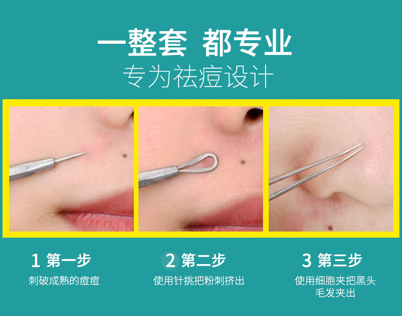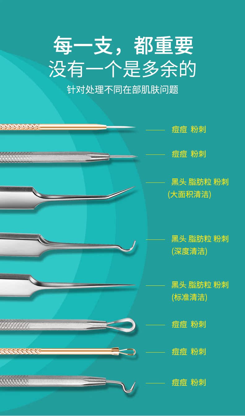 针对不同类型的肌肤问题,适用于粉刺、黑头、脂肪颗粒、暗疮针对性的专业工具,贴心设计不伤皮肤,使用更每一步都得心应手【送运费险】