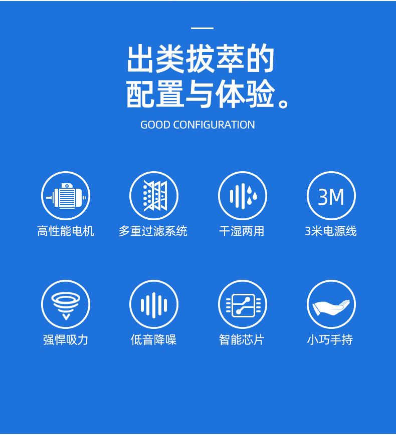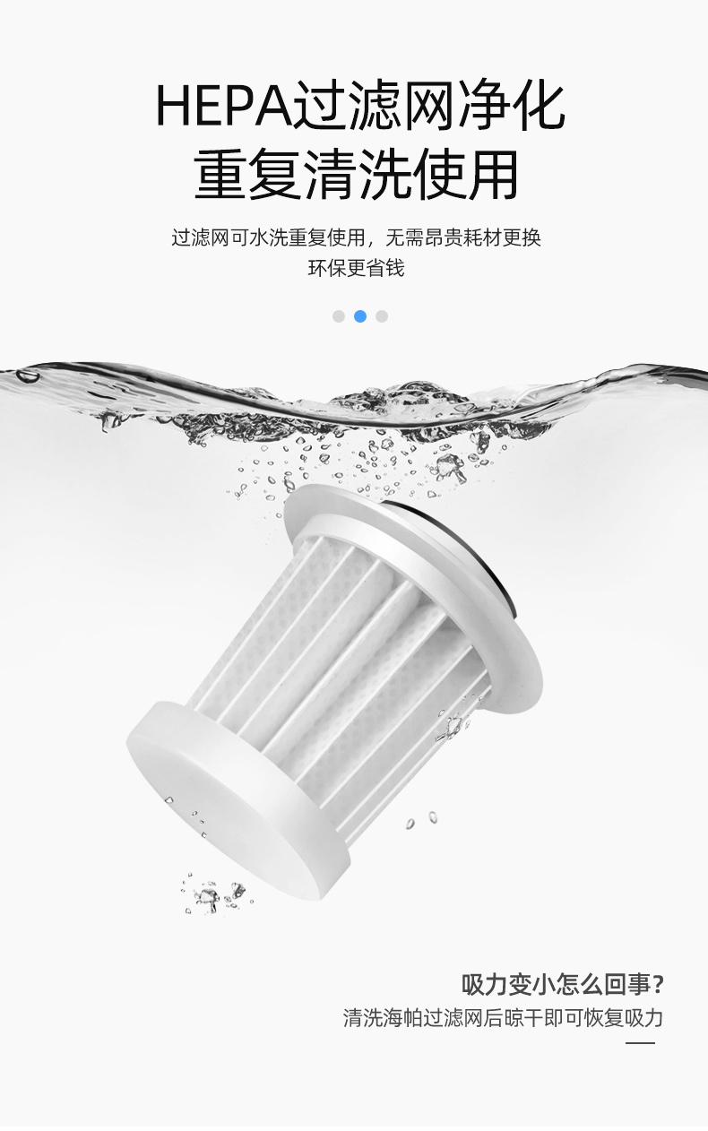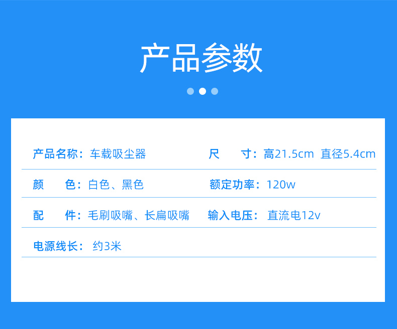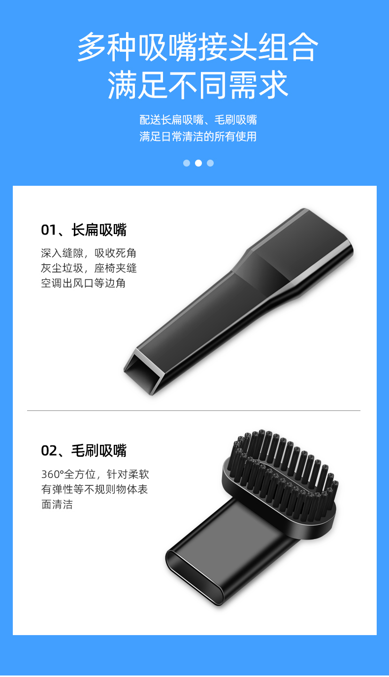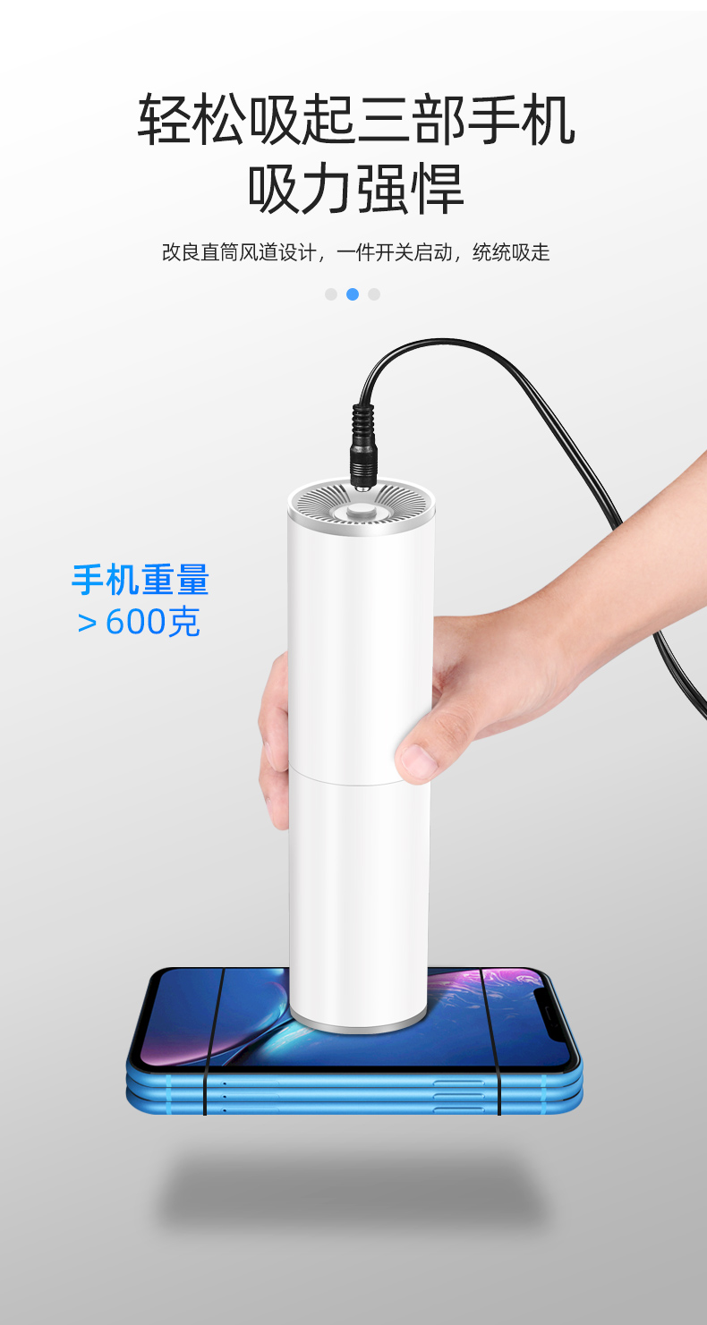 【推荐理由】:强劲大功率大吸力,家车两用,迷你机身,安静工作,两侧排气,高效清洁,一键倒尘更便捷。声音低沉不刺耳