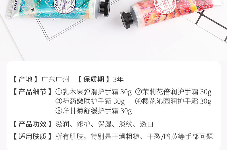 【礼盒装!】超值5支装,抖音人气爆款!韩国进口原料,五种植物精粹,五种不同鲜花清香,滋润保湿,淡化细纹的神奇功效,让你手润如花,每天都在做手部SPA~
