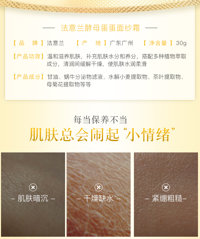 【第2件15】蛋蛋酵母卵壳面膜霜正品女补水保湿紧收缩毛孔网红