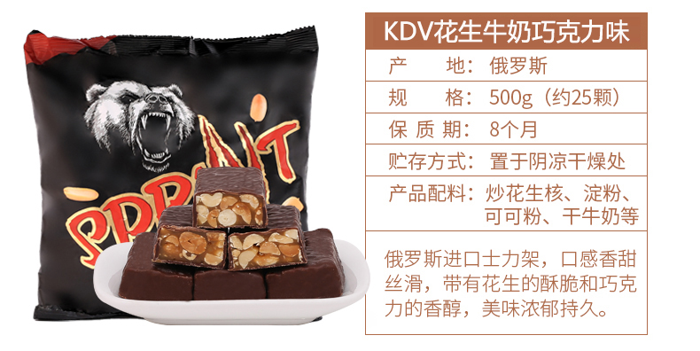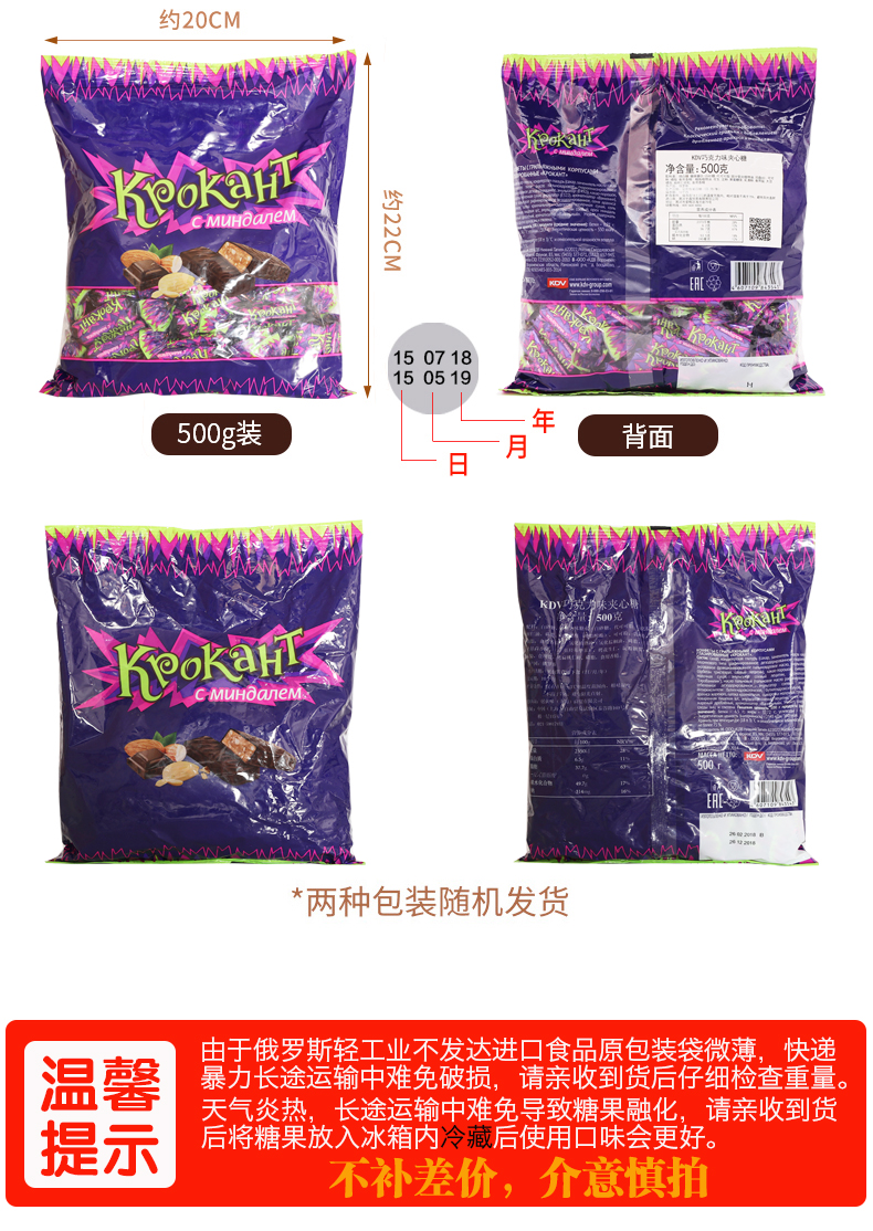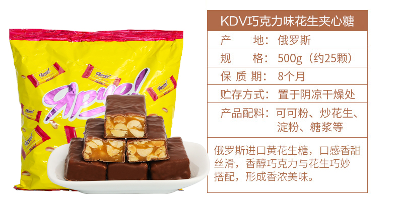 KDV紫皮糖俄罗斯正品夹心巧克力500g*3包进口零食年货喜糖果批发