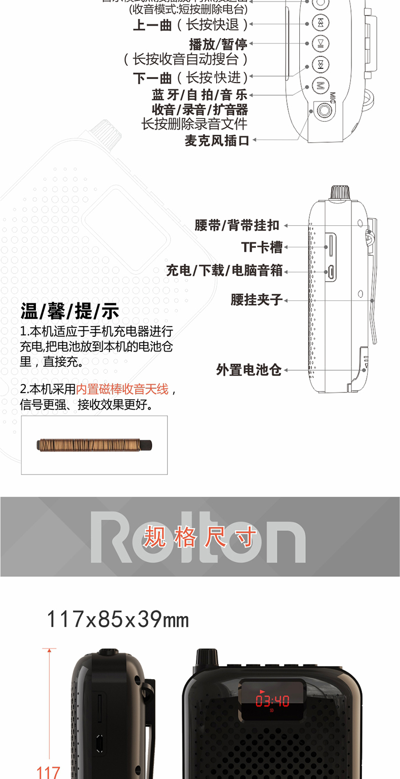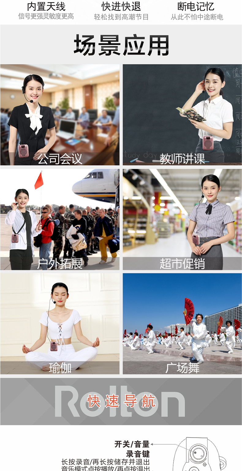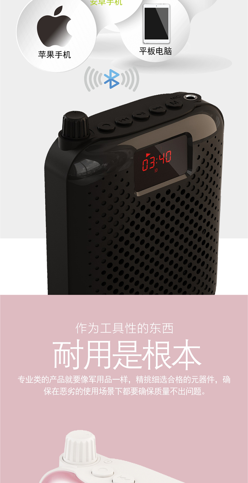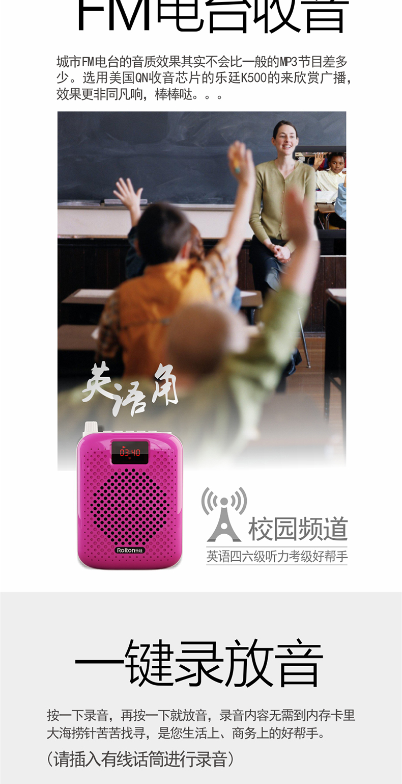 带录音/蓝牙的专业扩音器,清晰扩音好音质,不伤嗓子,经典小巧的外观,超大音量,超长续航,专为导游,教学以及宣传等场合设计,多色可选!