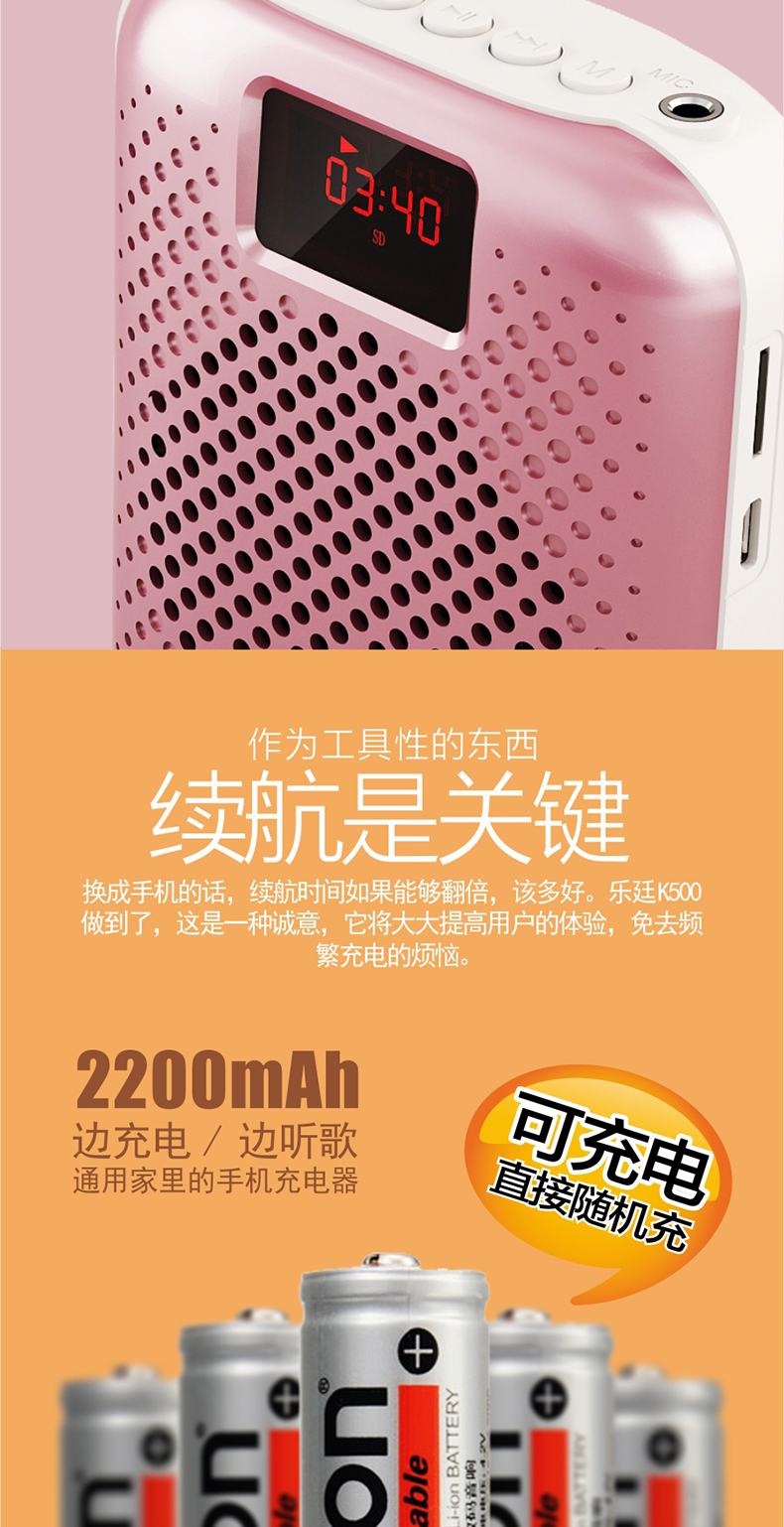 乐廷 K500录音无线蓝牙小蜜蜂扩音器教师专用教学腰挂迷你大功率叫卖喇叭户外便携式耳麦喊话器