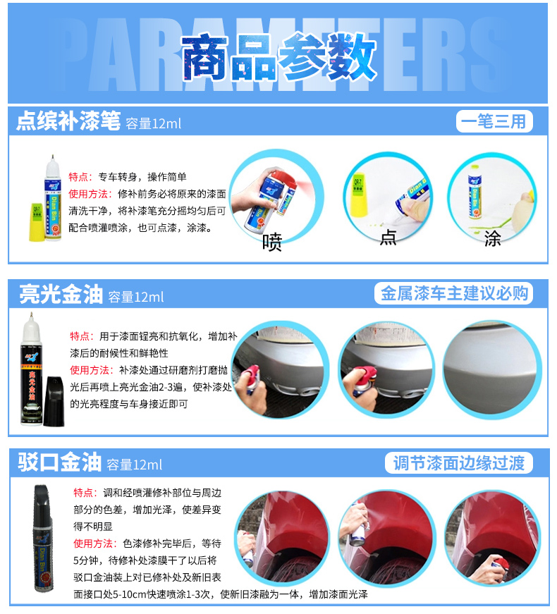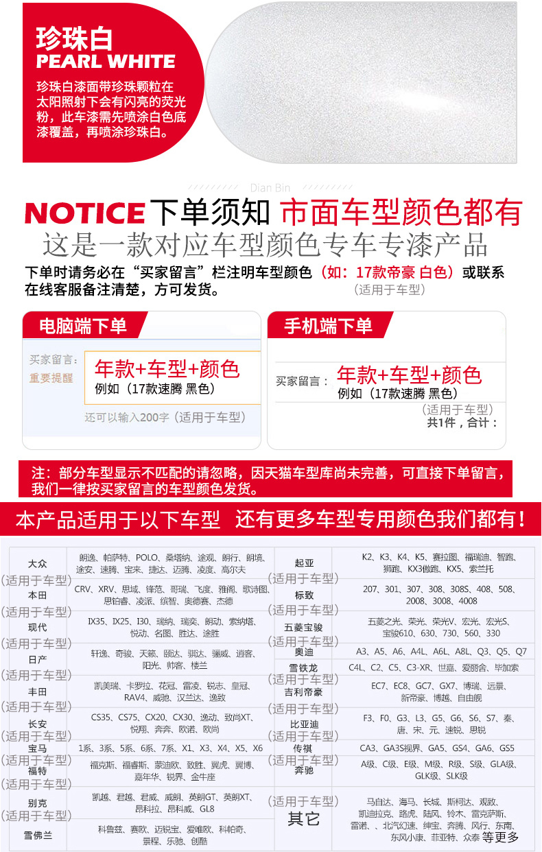 汽车补漆笔珍珠白色划痕修复液黑色油漆面修补车漆神器刮痕去痕点