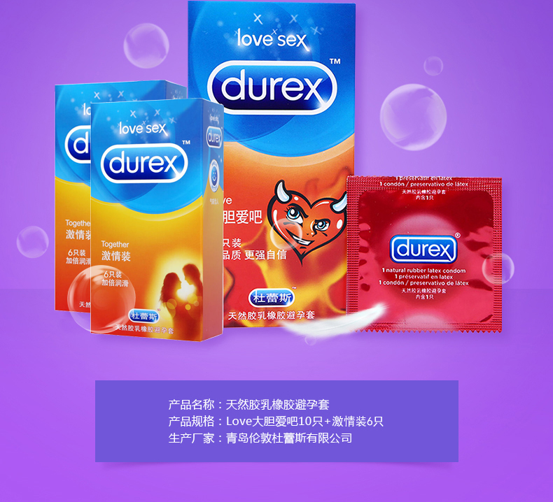 杜蕾斯激爽六合一避孕套 避育套情趣阴蒂刺激女士套套成人性用品