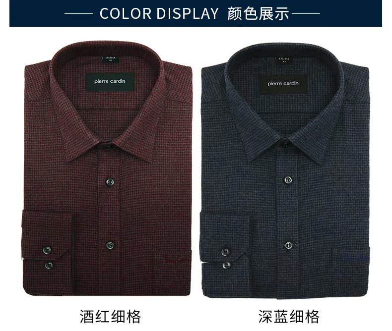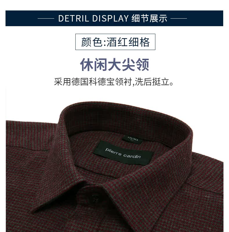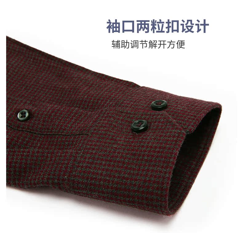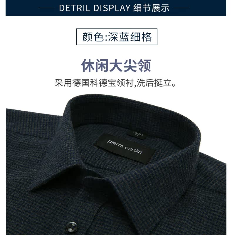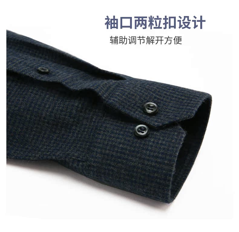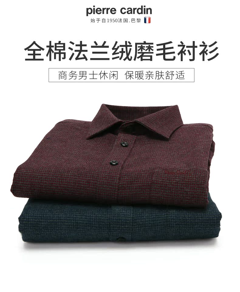 皮尔卡丹衬衫磨毛男长袖秋冬季新款纯棉休闲保暖格子爸爸男士衬衣