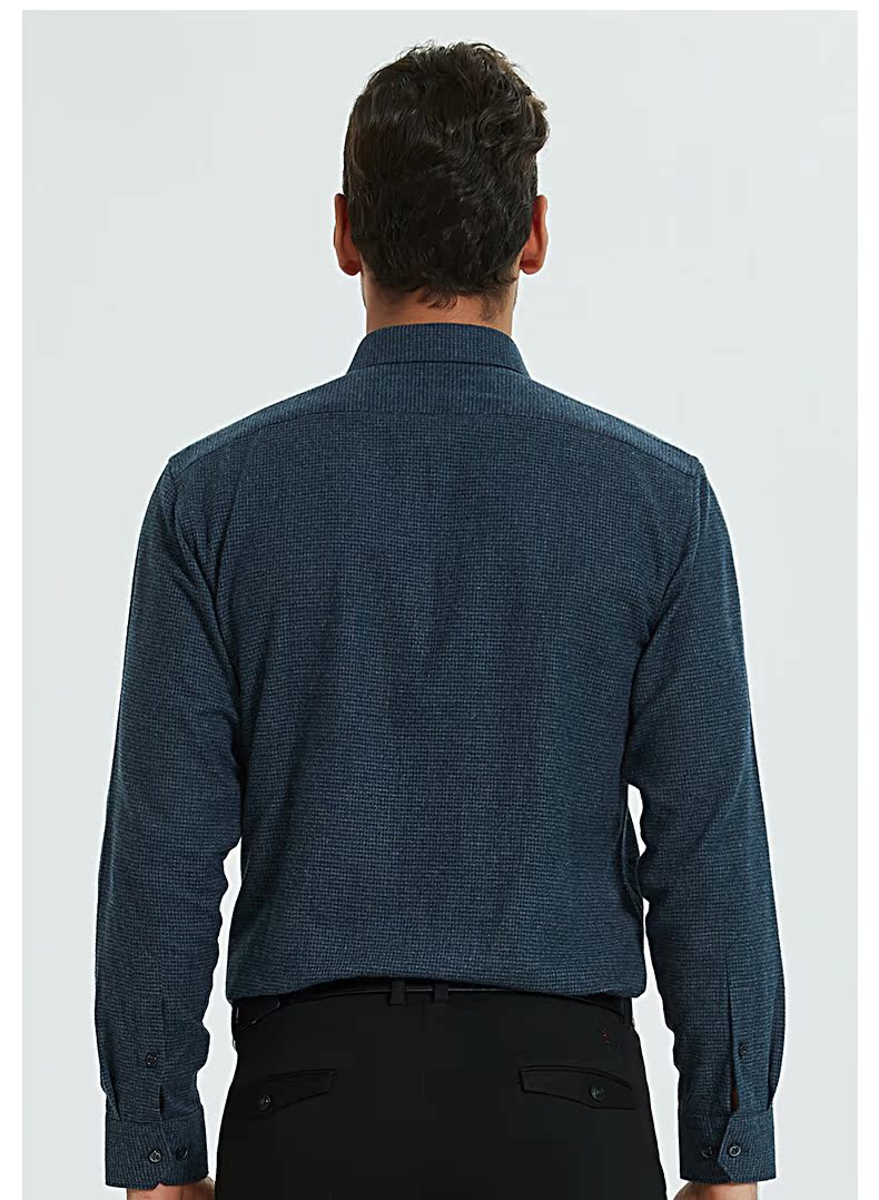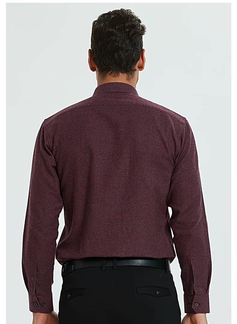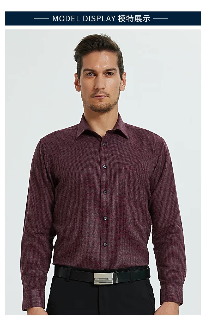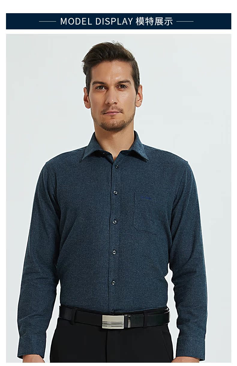 皮尔卡丹衬衫磨毛男长袖秋冬季新款纯棉休闲保暖格子爸爸男士衬衣