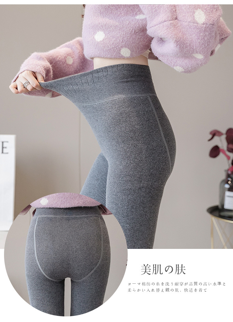 【官方直营】羊绒1900D打底裤高腰收腹保暖裤竖条纹加绒棉裤秋冬