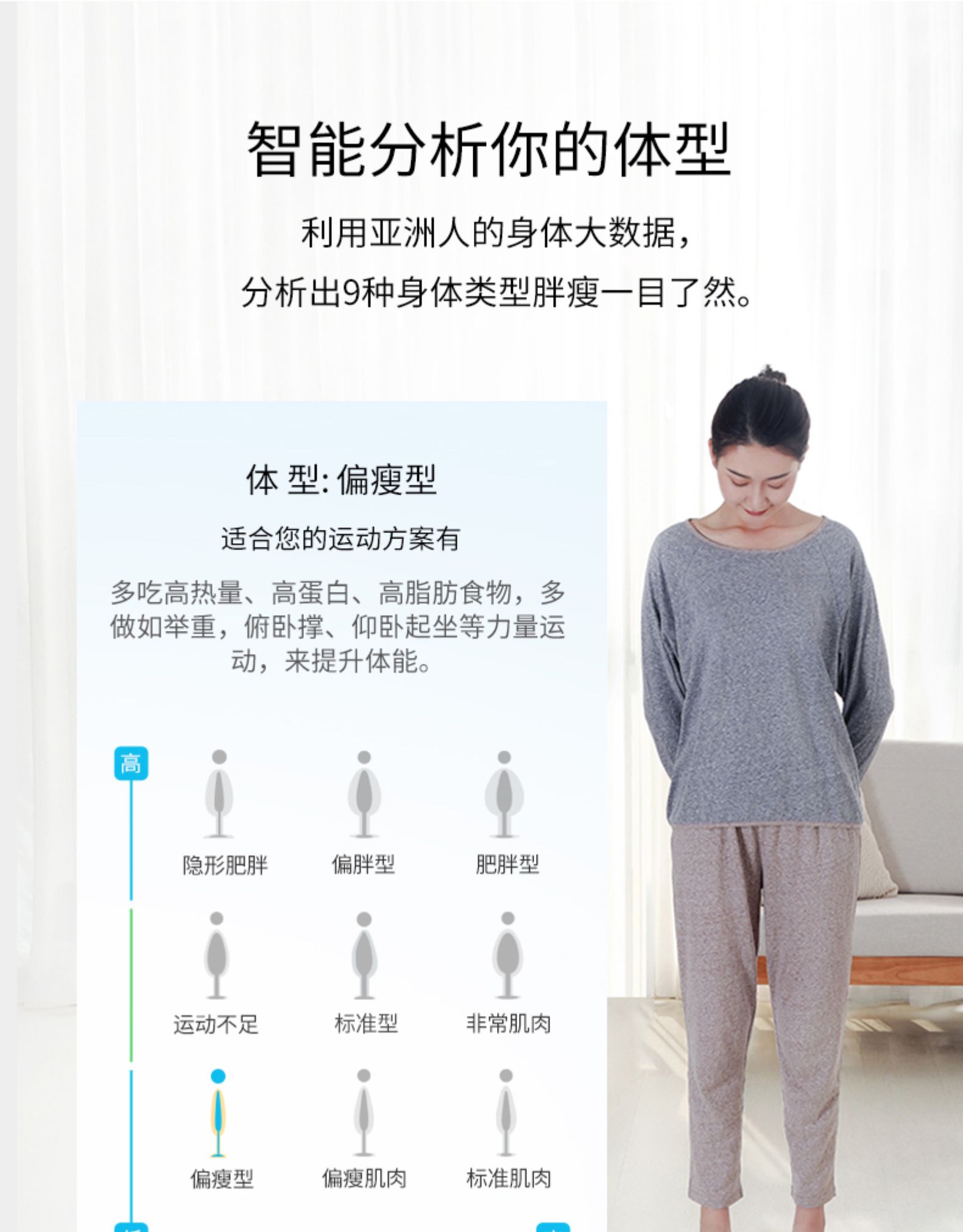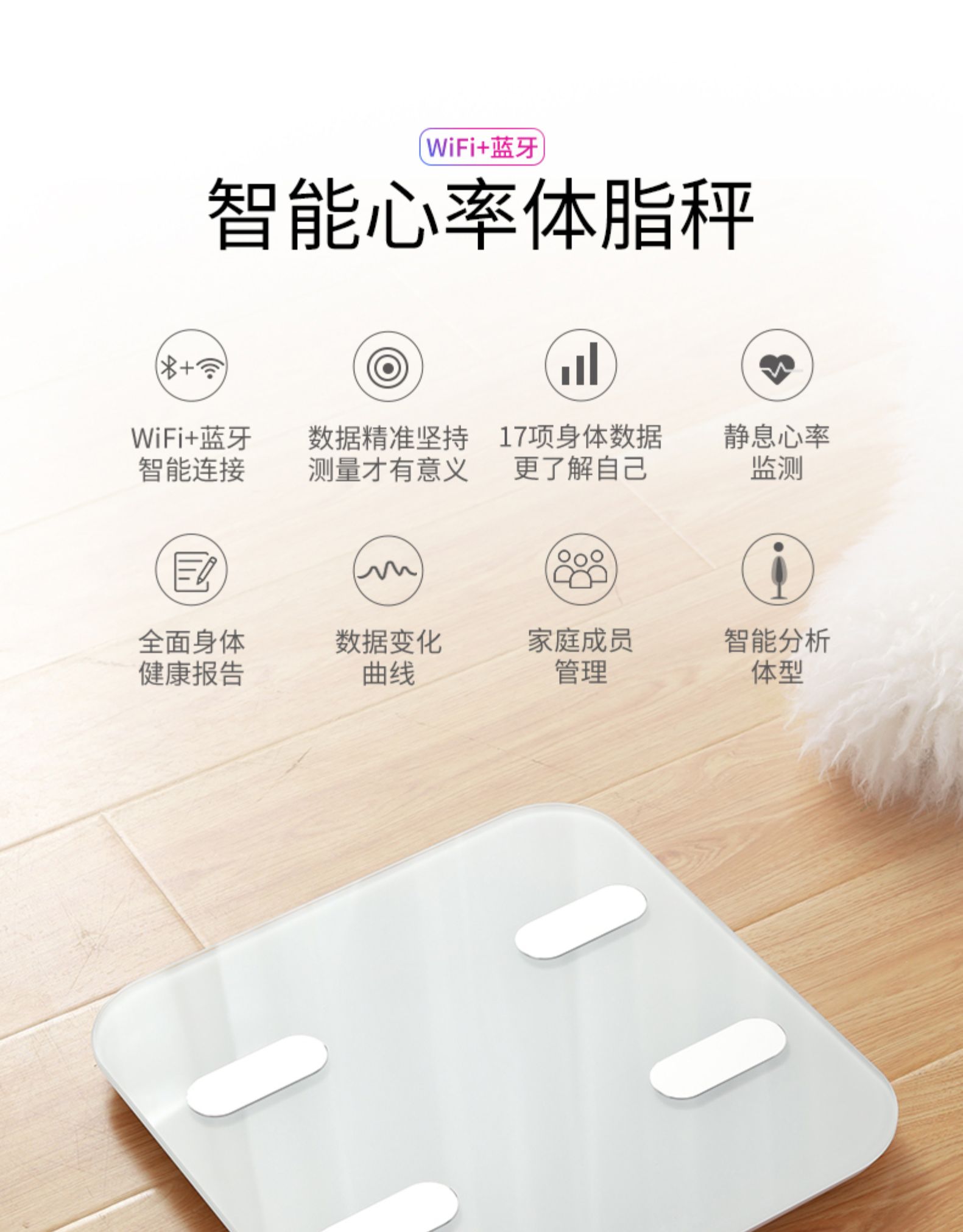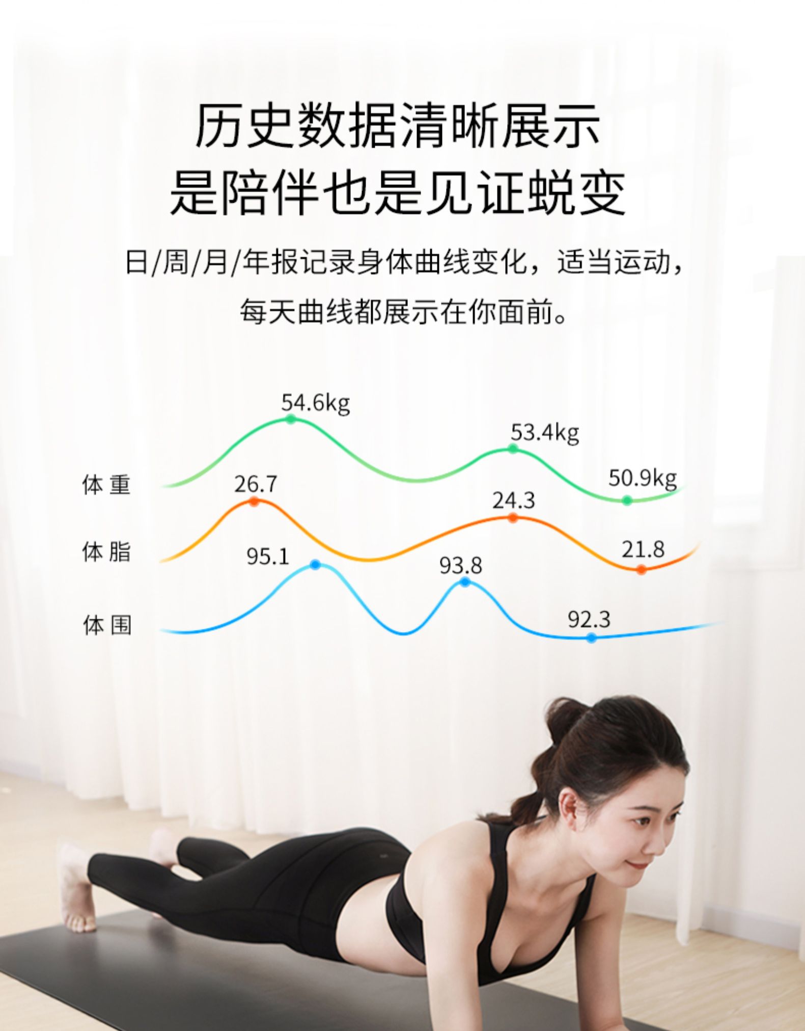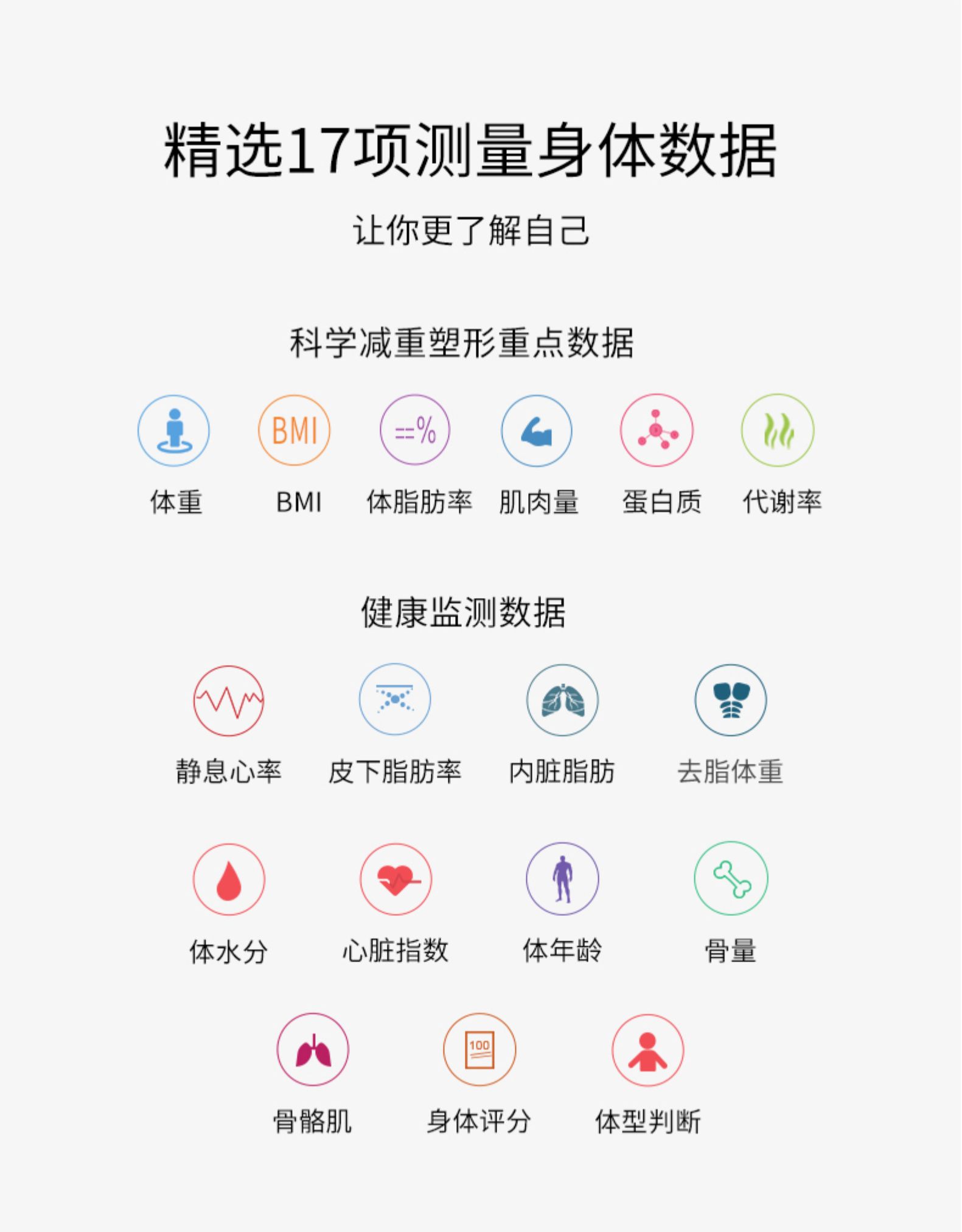 可以检测体脂哦,需要减肥的小仙女赶紧安利一个升级LED隐藏式显示屏,蓝牙WiFi双模板,震撼升级几十项数据,定制运动饮食建议,科学减重塑形,轻松掌控身体变化,专业瘦身利器。【赠运费险】