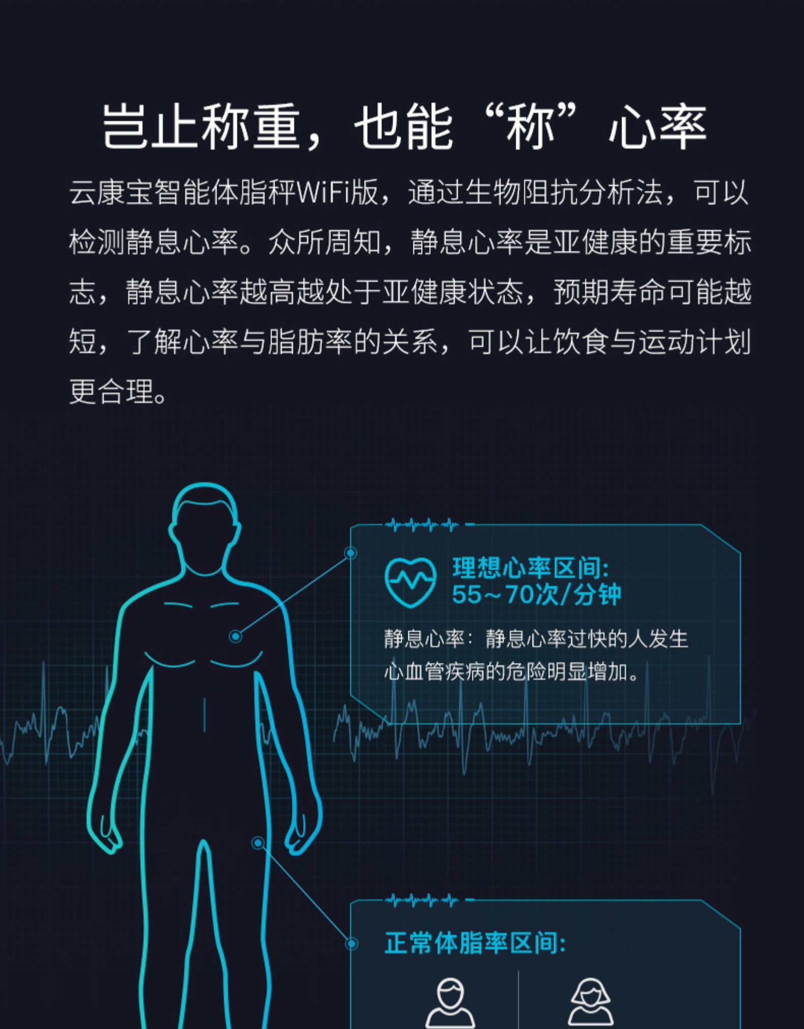 云康宝心率体脂秤华为智能wifi人体称精准体重秤家用测脂肪电子称
