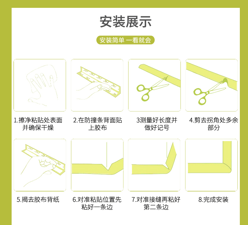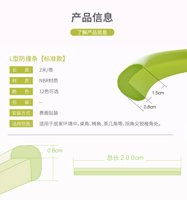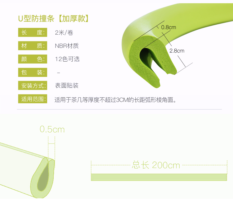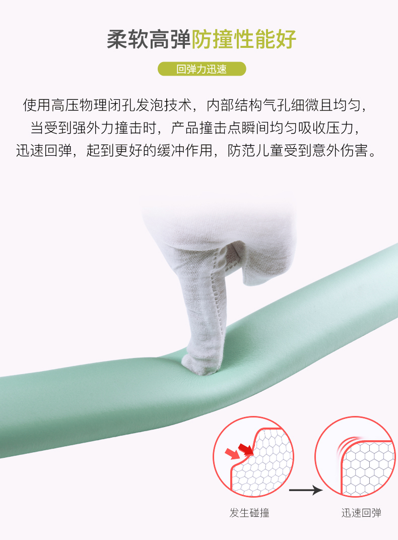 通过SGS认证,环保材质,高弹柔软,自由裁剪,油渍水渍一擦即净!适用于家里的桌子边,柜子边,墙边都是隐形的危险,宝妈可以放心让宝宝到处爬了,呵护宝宝快乐成长【赠运费险】