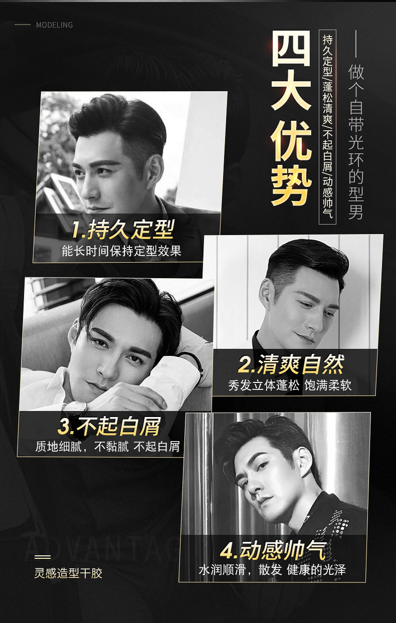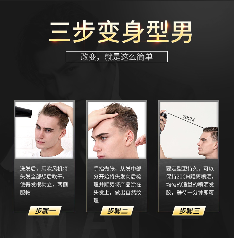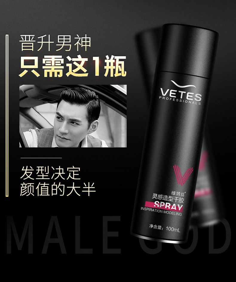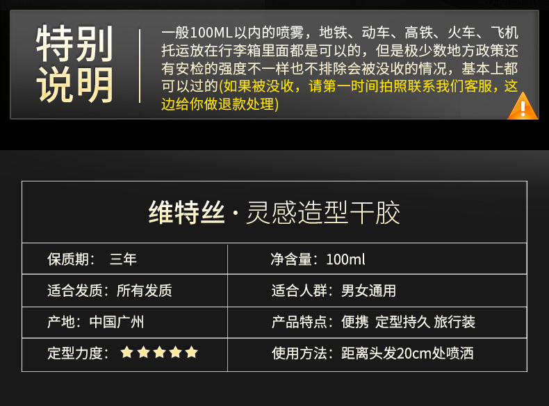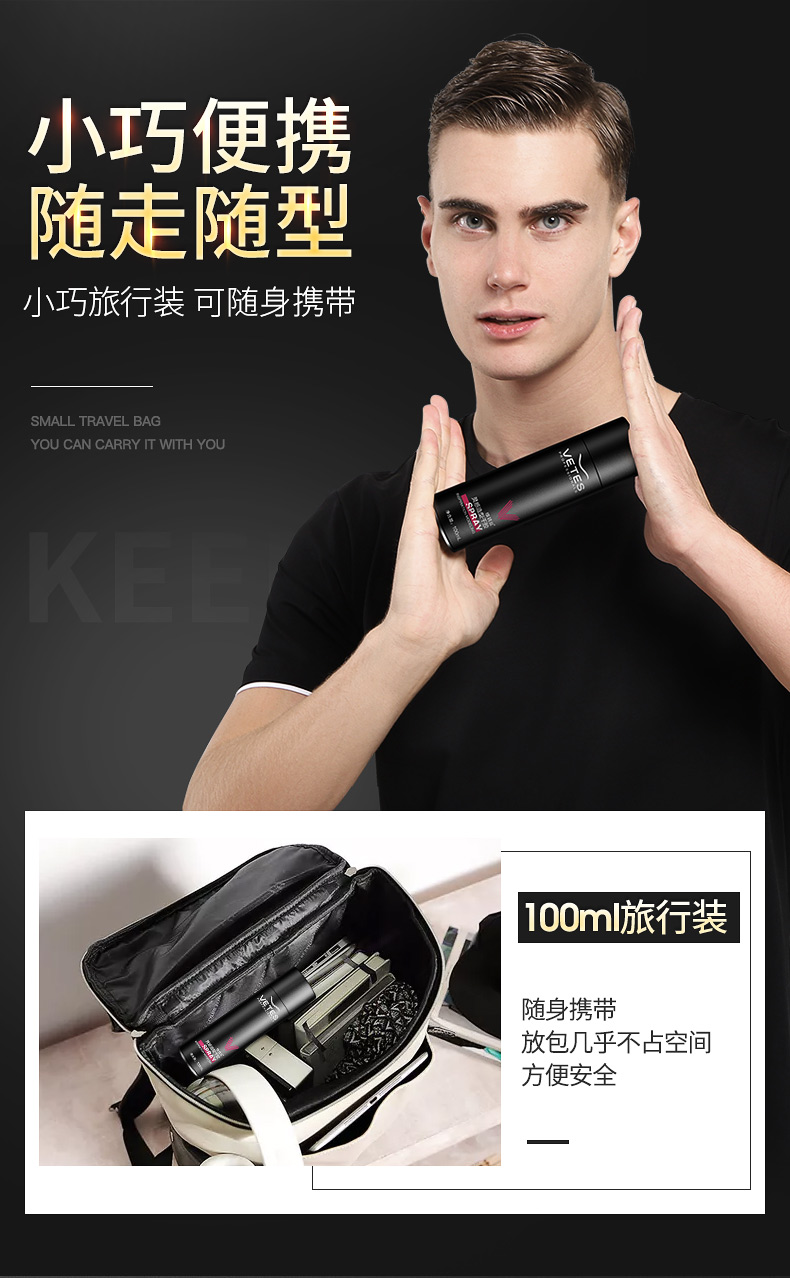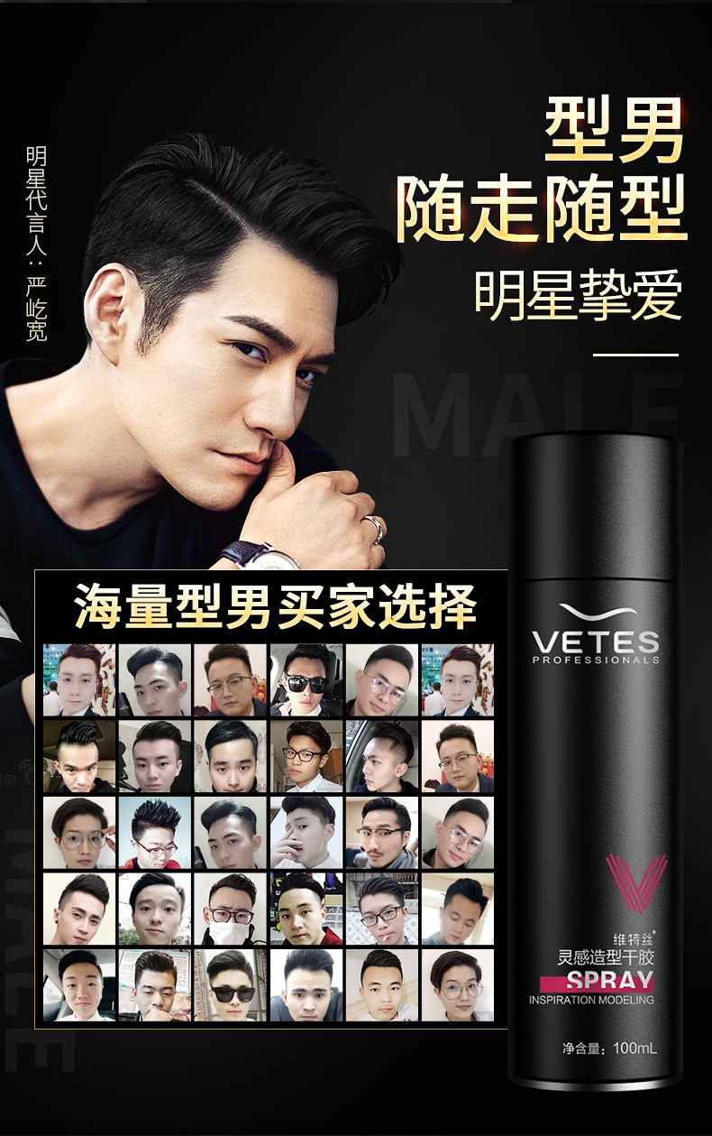 【明星严屹宽代言】100ML,清香方便携带,品质保障,加强定型,速干速定,不起白屑,持久定型,自然干爽,易于清洗。