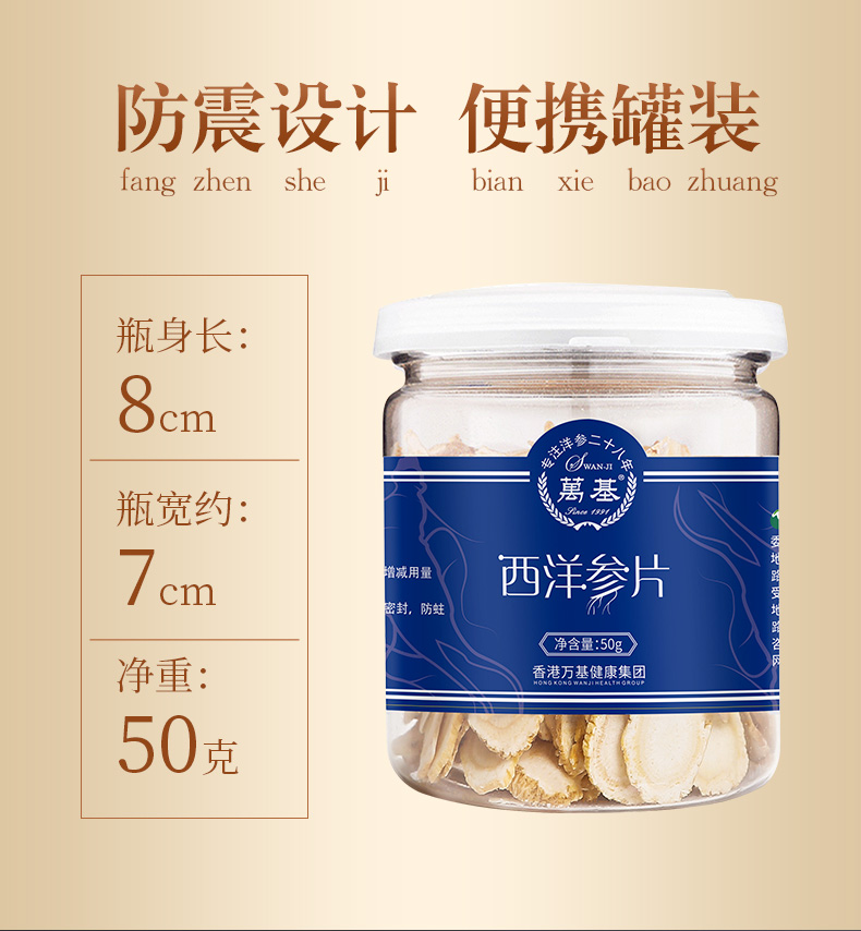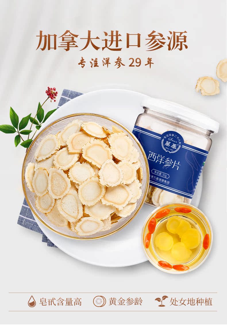 万基西洋参 加拿大进口西洋参切片50g罐装含片花旗参整枝洋参圆片