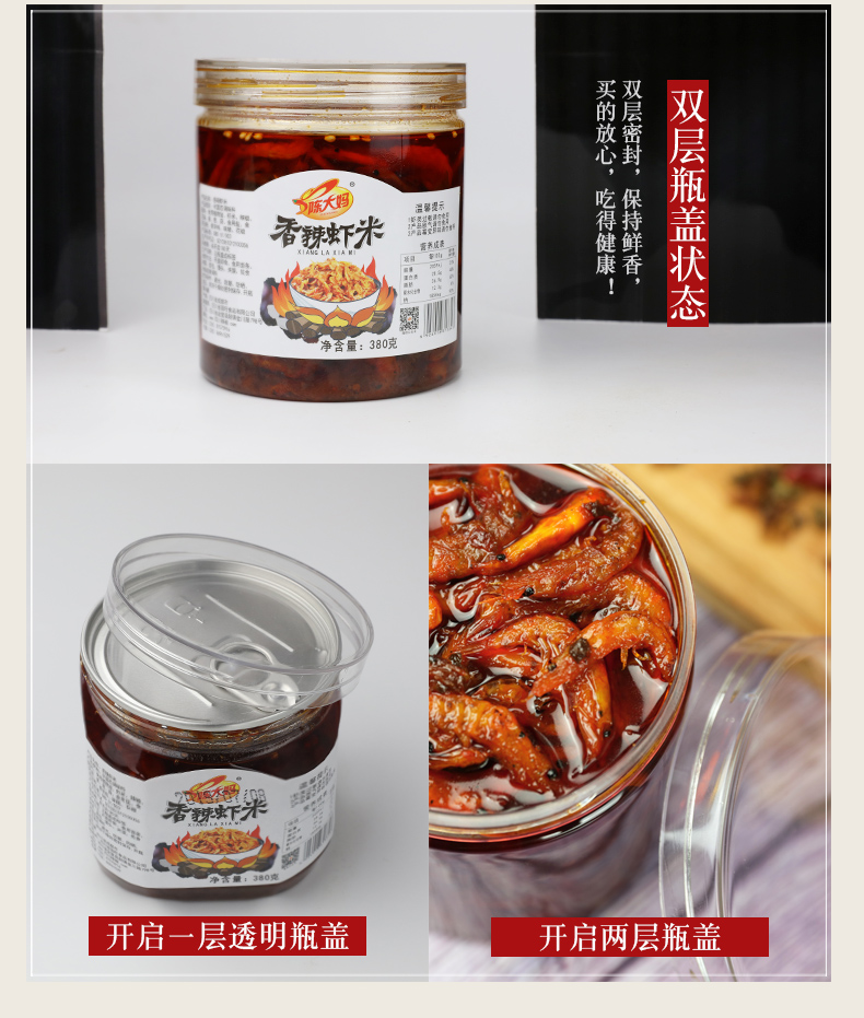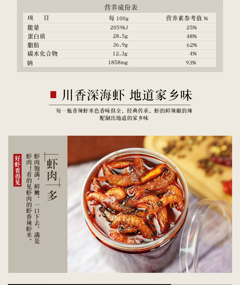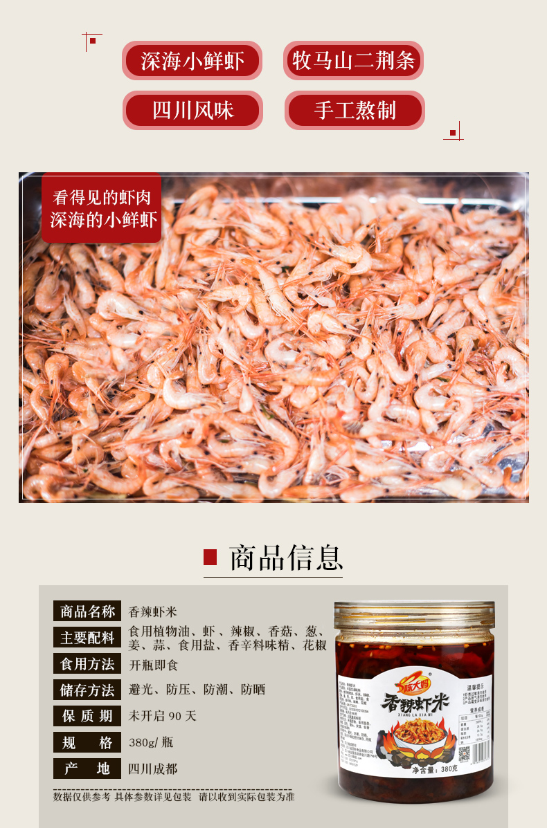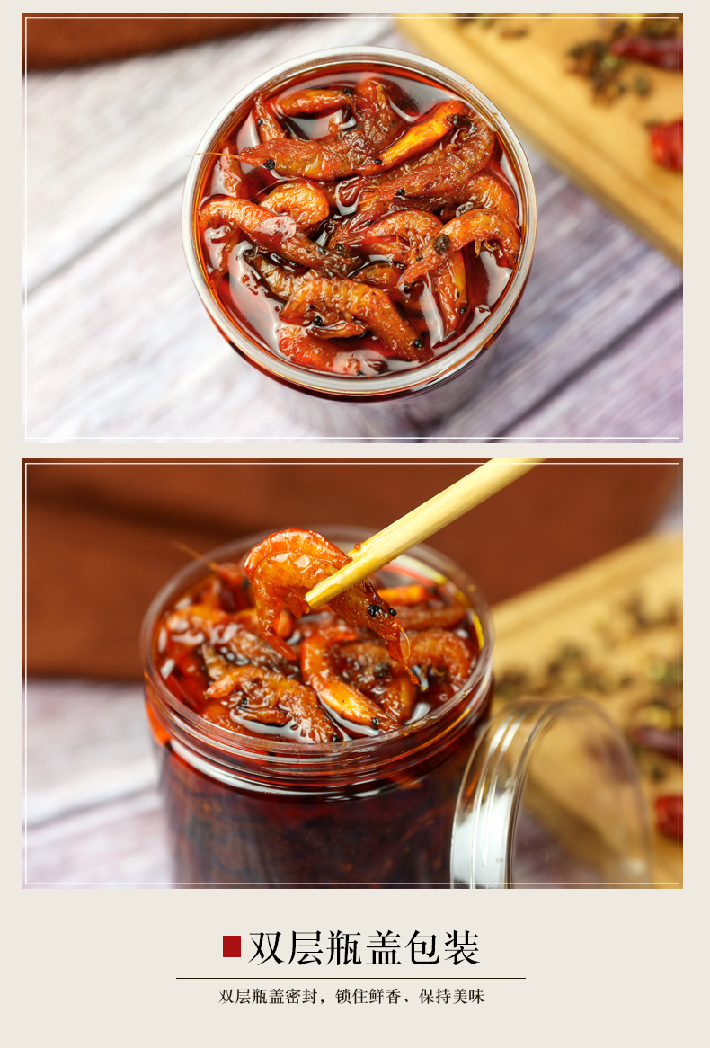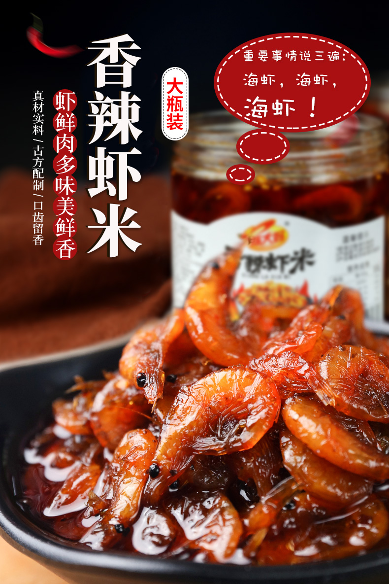 【南极深海虾】牧马山二荆条,四川风味,手工熬制,每一瓶香辣虾米色味俱全,滑嫩虾肉,爽辣口感,味觉的爆发,一口真香~