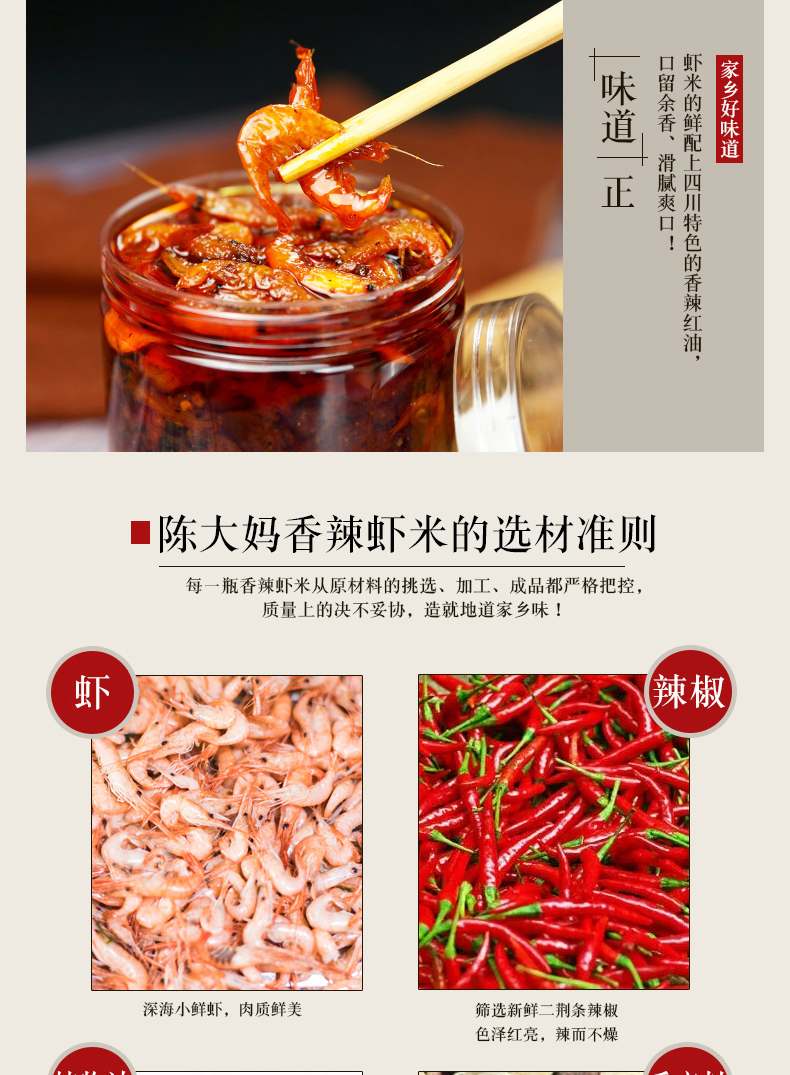陈大妈下饭菜下酒菜香辣虾米麻辣海鲜拌面拌饭菜即食虾仁零食灌装