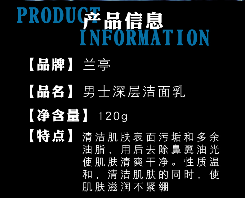 【抢购价】兰亭正品男士洗面奶,补水提亮肤,控油清爽,净肤去垢,深层清洁,收缩毛孔,补水保湿,滋润肌肤,去黑头,适合所有肌肤使用,专注男士护肤,值得选择!