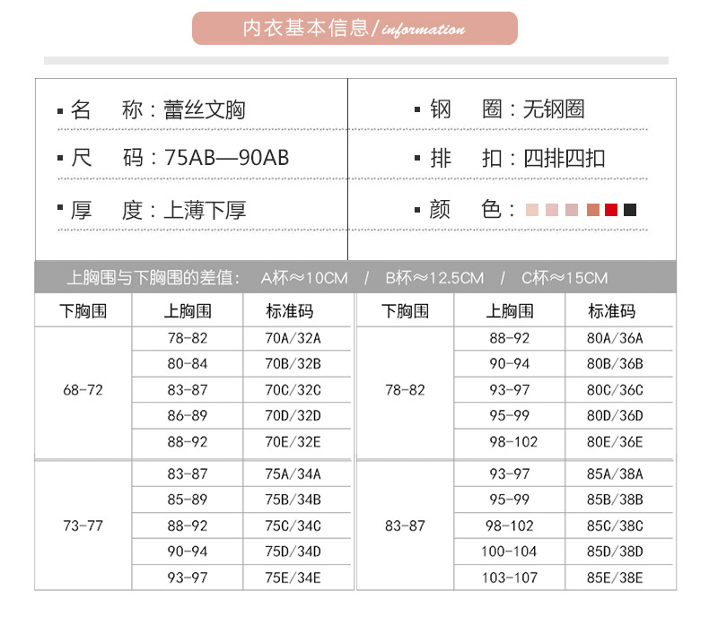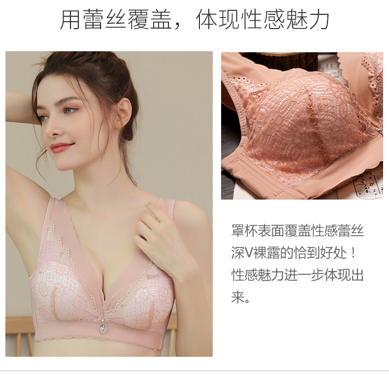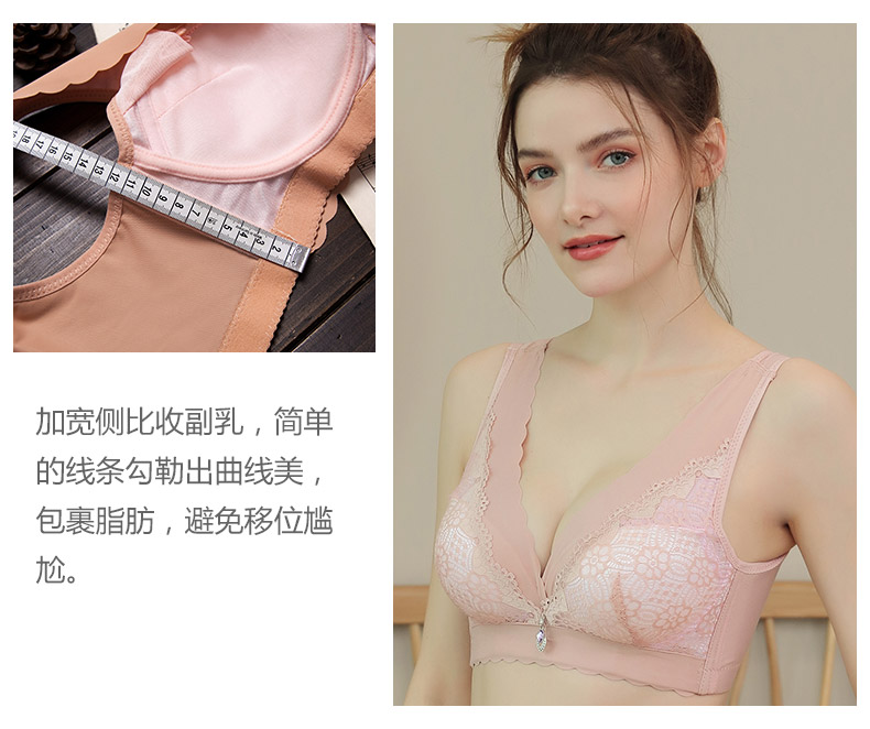 聚拢上托无钢圈文胸,蕾丝杯边贴合防空杯,无胶骨减少身体压迫,后背防滑,罩杯柔软,舒适透气,加宽侧翼,收副乳,小胸变大、超聚拢,防下垂~