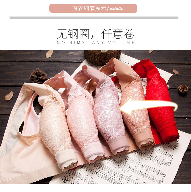 内衣女无钢圈背心小胸加厚胸罩聚拢调整型性感蕾丝上托收副乳文胸