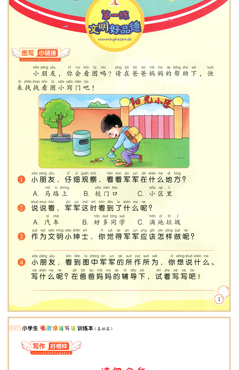 随机一本小学生看图说话写话训练注音版一年级二年级看图作文起步一句话一段话训练本1-3年级看图说话写话日记作文起步基础入门书
