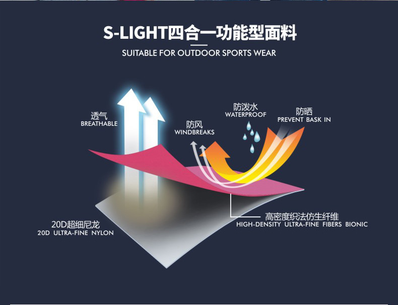 超轻薄面料,透气不闷热,防水整理,强韧抗撕裂,立体修身设计,不同于一般品牌,穿着大气上档次,春游好搭档,现在不买,旺季被宰