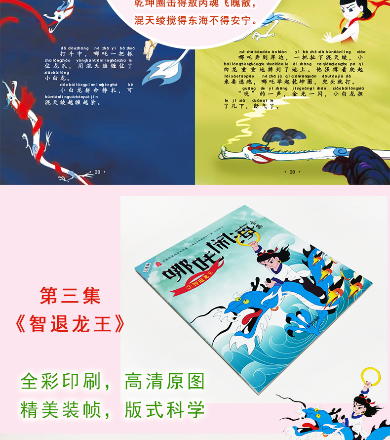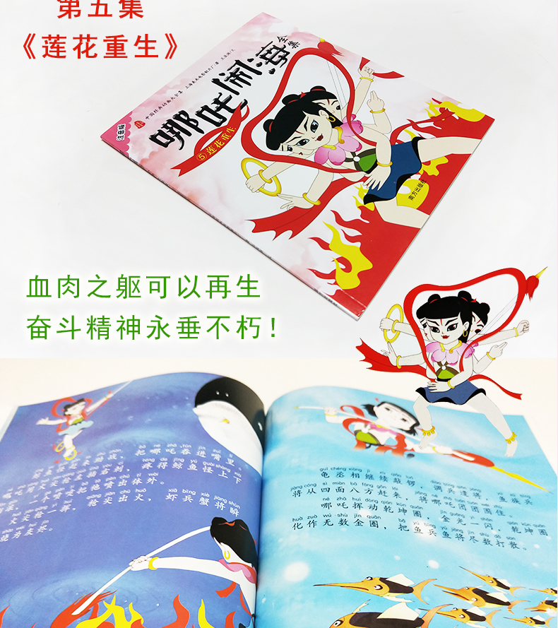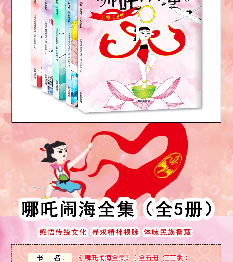 中国经典动画大全集,哪吒闹海全5册,童话故事绘本,内容有趣,插图精美,文字带有注音,儿童必读课外书,宝宝睡前故事书。