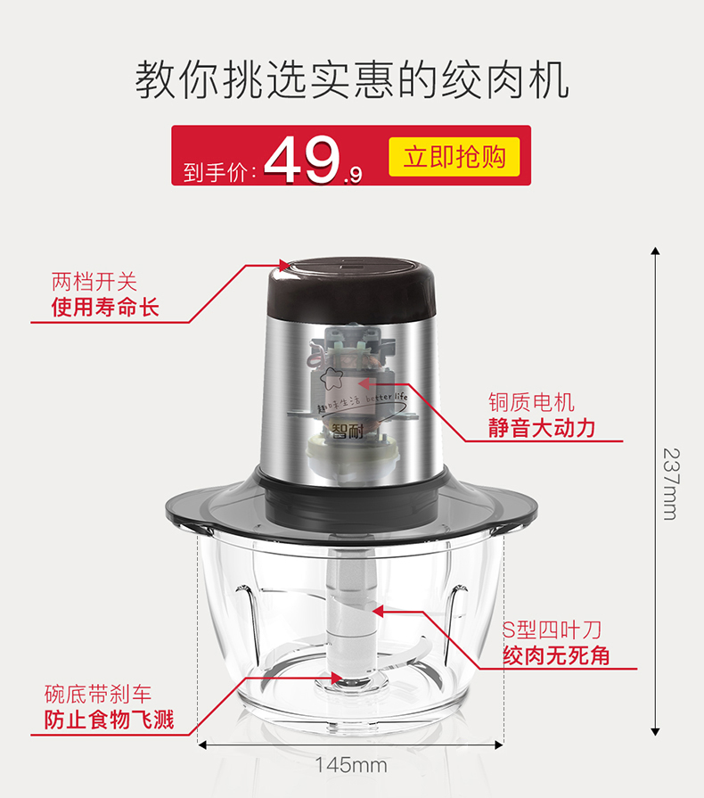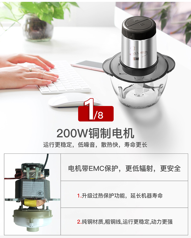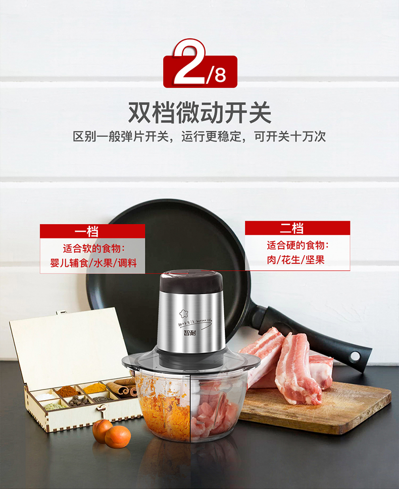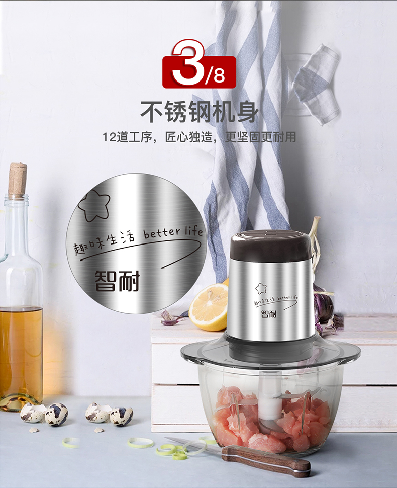 【智耐绞肉机,7天无理由退货,赠运险费】一机多能、轻松料理。动力强、易操作、更安全。快慢两即净。轻松驾驭多种食材、随心畅享美味、6秒速绞,告别腰酸手累,无需费时费力。