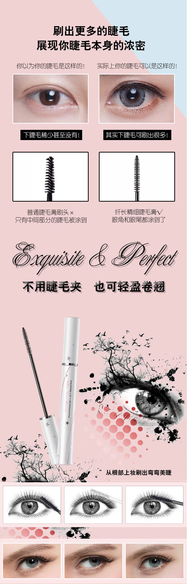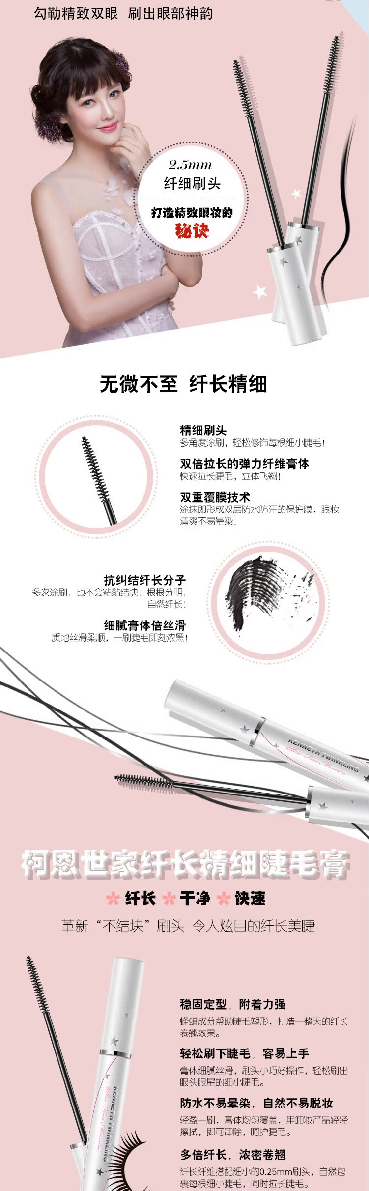 柯恩世家睫毛膏防水纤长卷翘不易晕染加长正品极细持久自然细刷头
